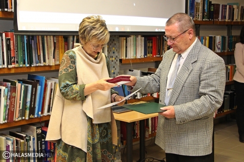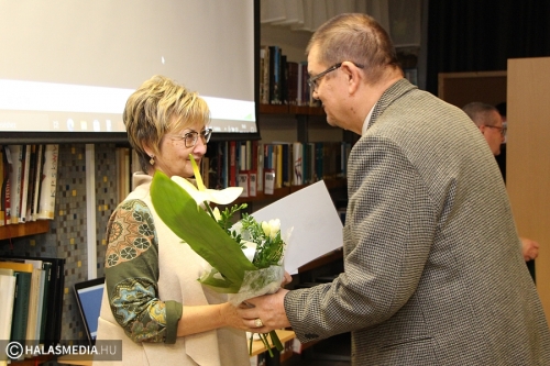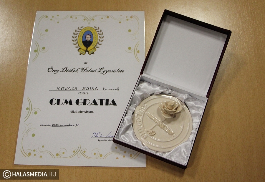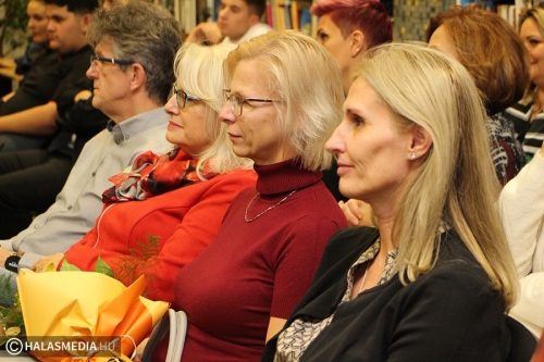 Volt és jelenlegi diákok, tisztelők és korábbi díjazottak gyűltek össze a Martonosi Pál Városi Könyvtárban szerdán este, hogy együtt köszöntsék Kovács Erikát, a Cum Gratia díj idei kitüntetettjét. A tanárnő meghatódva vette át az Öreg Diákok Halasi Egyesületének elismerését.