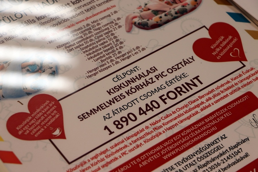 Az emberek összefogásának az eredménye ez az ajándékcsomag mondta Nyilka Ildikó a Semmelweis Kórház tanácstermében. Volt, aki egy kávé árával támogatta a jótékonysági akciót, míg mások a plüss licittel, a jótékonysági webshopban történő vásárlással járult hozzá a sikerhez.