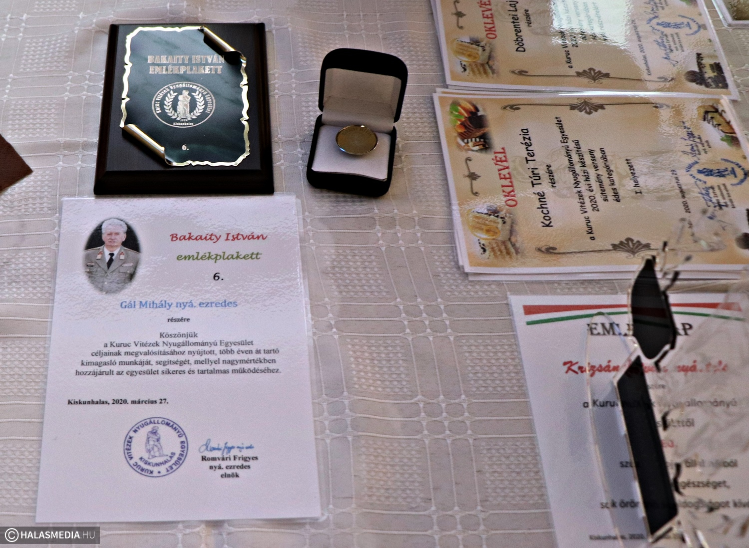 A közgyűlésen elismerések átadásra is sor került. Bakaity Istvánnénak dr. Benkő Tibor honvédelmi miniszter emléktárgyat adományozott, Kakuk Gyuláné emléklapot kapott. A Bajtársi Egyesületek Országos Szövetségének elnöke elismerésben részesítette Romvári Frigyest, a Kuruc Vitézek Nyugállományú Egyesület elnökét. A Kuruc Vitézek Nyugállományú Egyesület elnöksége Szalka Zoltánnét önzetlen, segítőkész, áldozatos munkájáért emlékplakett elismerésben részesítette, Vidáné Lantos Etelka több éven keresztül végzett kiemelkedő munkájáért emlékplakettet vehetett át. A Bakaity István Emlékplakettet ebben az évben Gál Mihály nyugállományú ezredes érdemelte ki. Részletek a 19 órakor kezdődő híradóban.