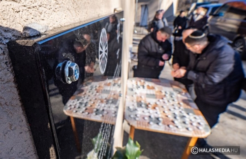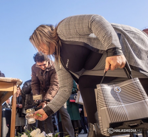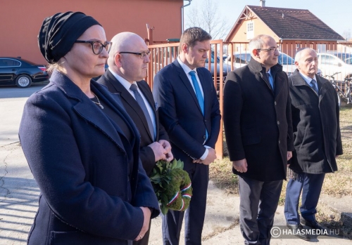 A beszédeket követően a vendégek kivonultak és a Kiskunhalasi Cigány Közösségi Ház falán elhelyezett emléktáblát SztojkaAttila kormánybiztos és Fináli Péter MAZSIHISZ elnöki megbízott leleplezték. Az emléktáblát Seffer Attila plébános megáldotta. A résztvevők az emléktábla alatt koszorúk és mécsesek elhelyezésével fejezték ki tiszteletüket. Az eseményről a Halas Televízió hétfő esti hírnaplójában számol be.