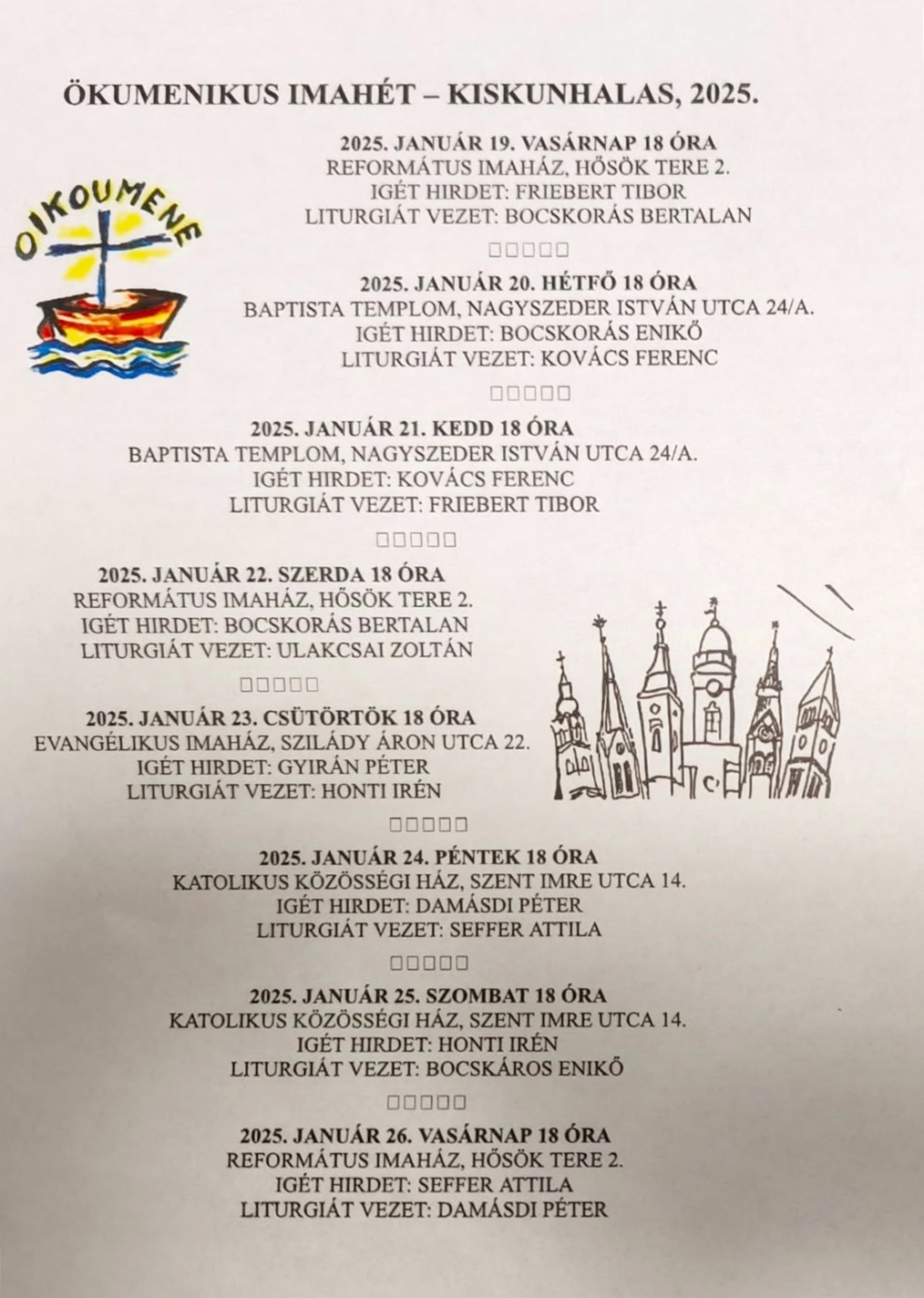 Egy héten át, minden este máshol, más osztja meg vallási gondolatait az érdeklődőkkel. Vasárnap Kiskunhalason is elindul a 2025-ös Ökumenikus Imahét, mely egészen január 26-ig kínál napról-napra programlehetőséget és lelki feltöltődést a híveknek.