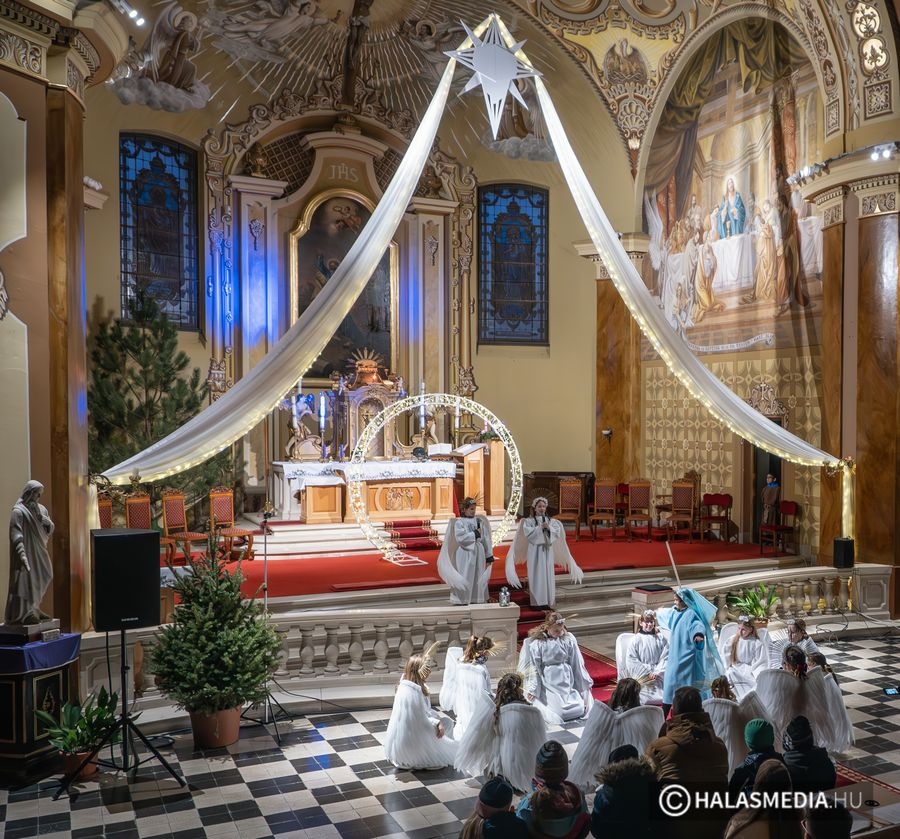 Minden évben nagy érdeklődés övezi a pásztorjátékot a katolikus egyházközösségben. Ebben az esztendőben is a Szent József Katolikus Általános Iskola tanulóinak szereplésével mutatták be a betlehemes játékot. Az idei előadásnak azonban több különlegessége akadt. Az előadásra érkezőknek azonnal szembe tűnt a templombelső oltár előtti részének látványos díszlete. Egy csillagcsúcsban végződő háromszög adott timpanonszerű keretet az oltár előtti résznek.