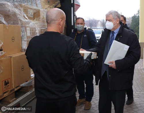 2025 végéig közel 600 ezer laptopot kapnak az 5-12. évfolyamokon tanuló diákok. Az első körben a kilencedik osztályosok vehetik át a készülékeket, hétfőn reggel a Kiskunhalasi Bibó István Gimnáziumba érkezett meg egy szállítmány. Ebben 120 tanulói és 20 tanári laptop volt, de mint kiderült, a napokban újabb intézményekben várhatják digitális eszközöket.