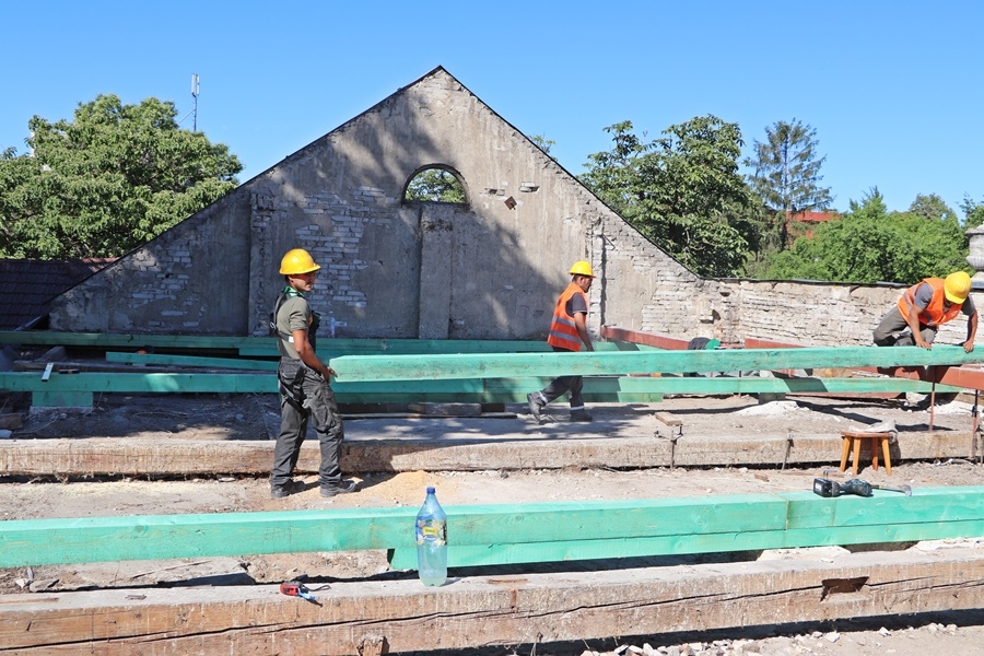 A tető felújításán folyamatosan dolgoznak a szakemberek, sorra a helyukre kerülnek az új gerendák.