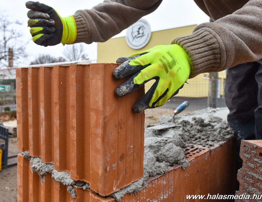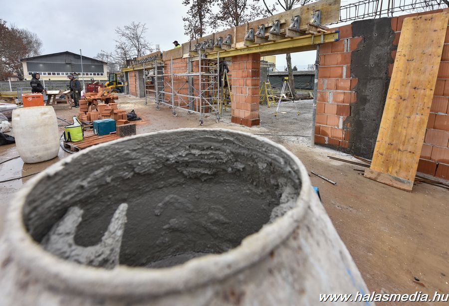 Az épülettömb formája lassan látképpé alakul. Az alapra felhúzták a falakat, a termek, a helyiségek elhelyezkedése is formálódik. A hét második felében már a koszorú betonozási munkái kezdődtek meg. Juhász Tibor, a kedvezményezett képviseletében arról tájékoztatott, hogy jó ütemben megy a kivitelezés.