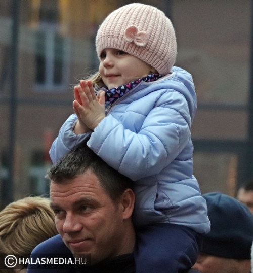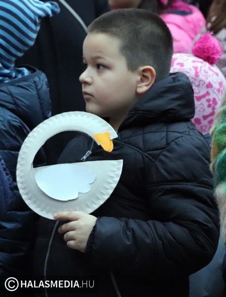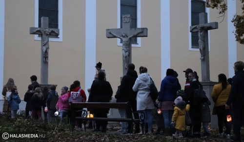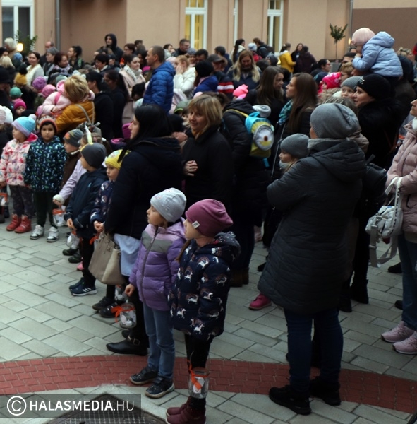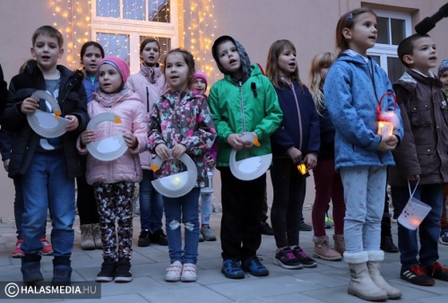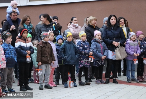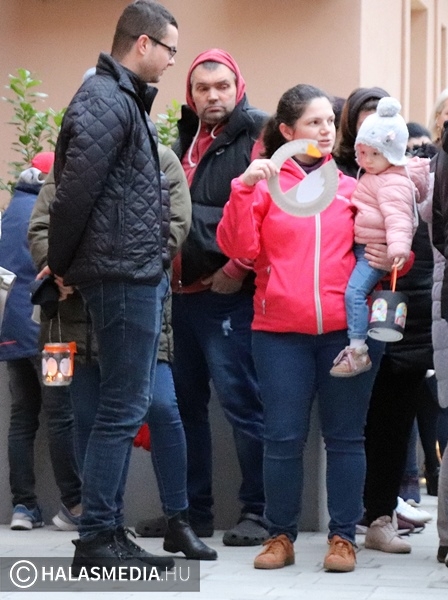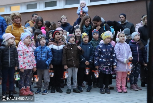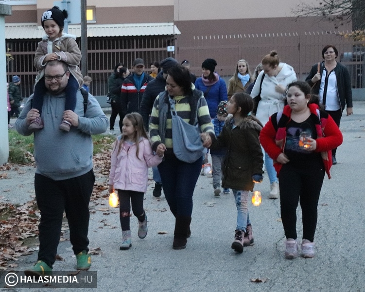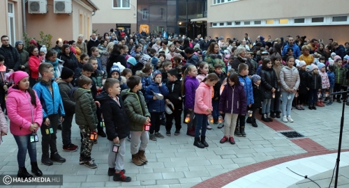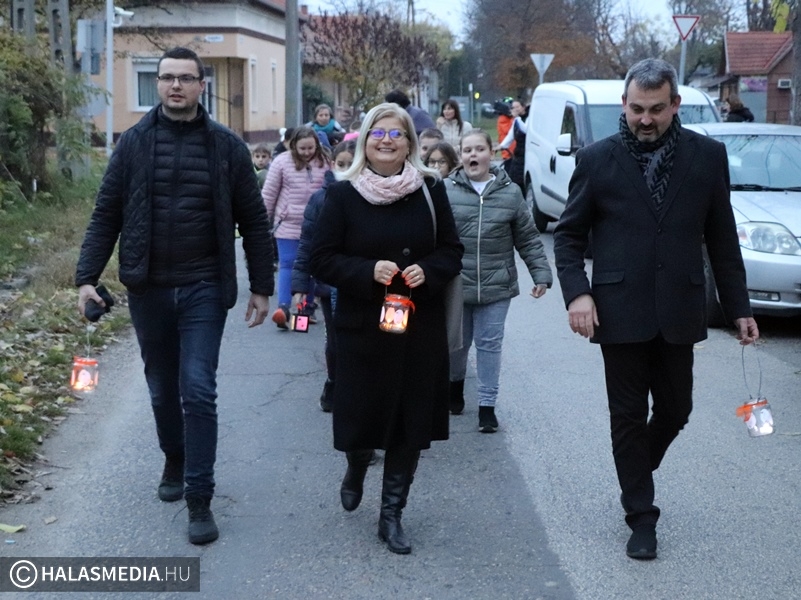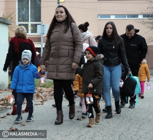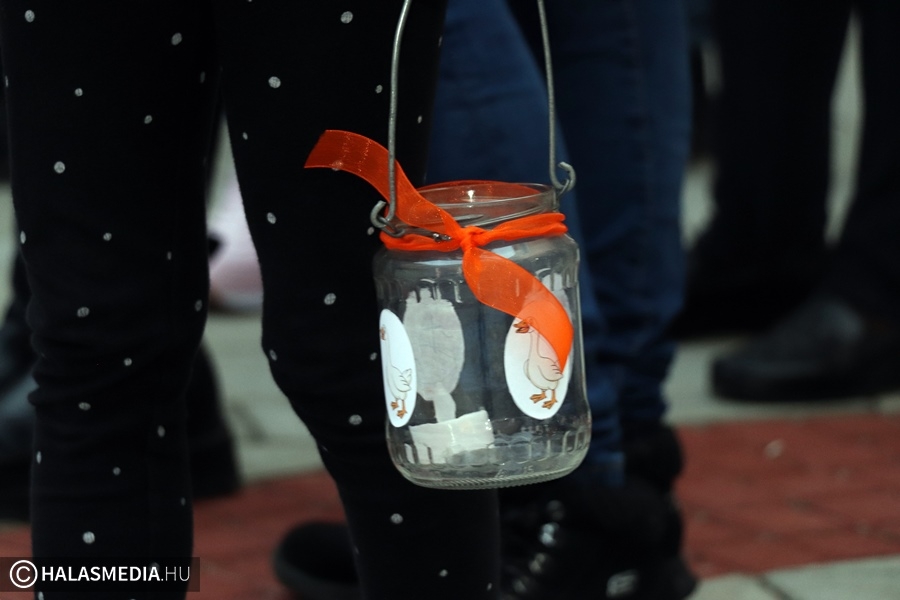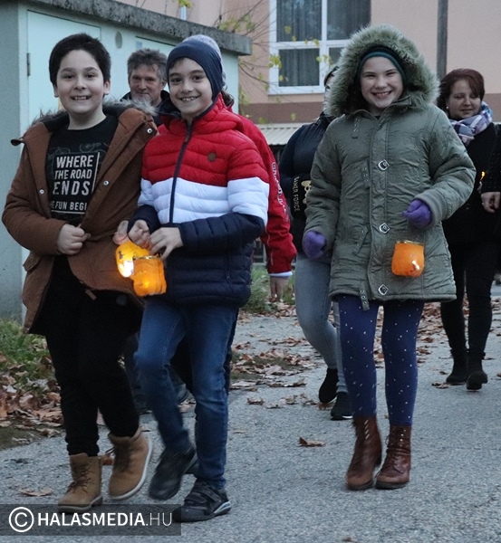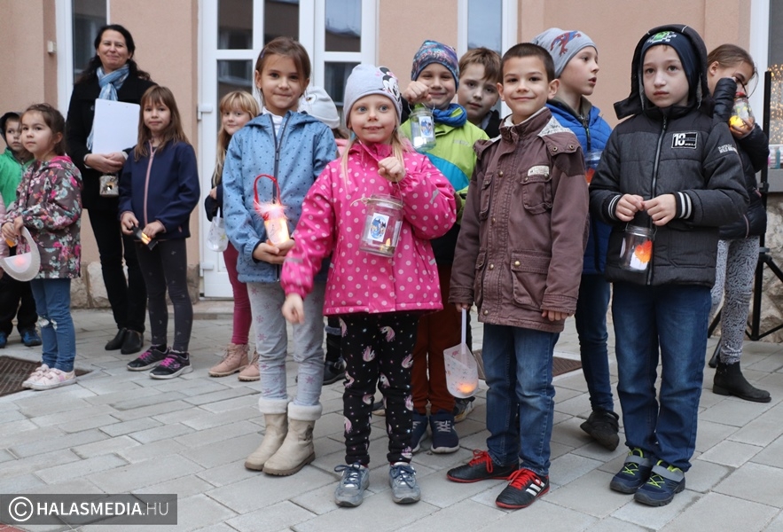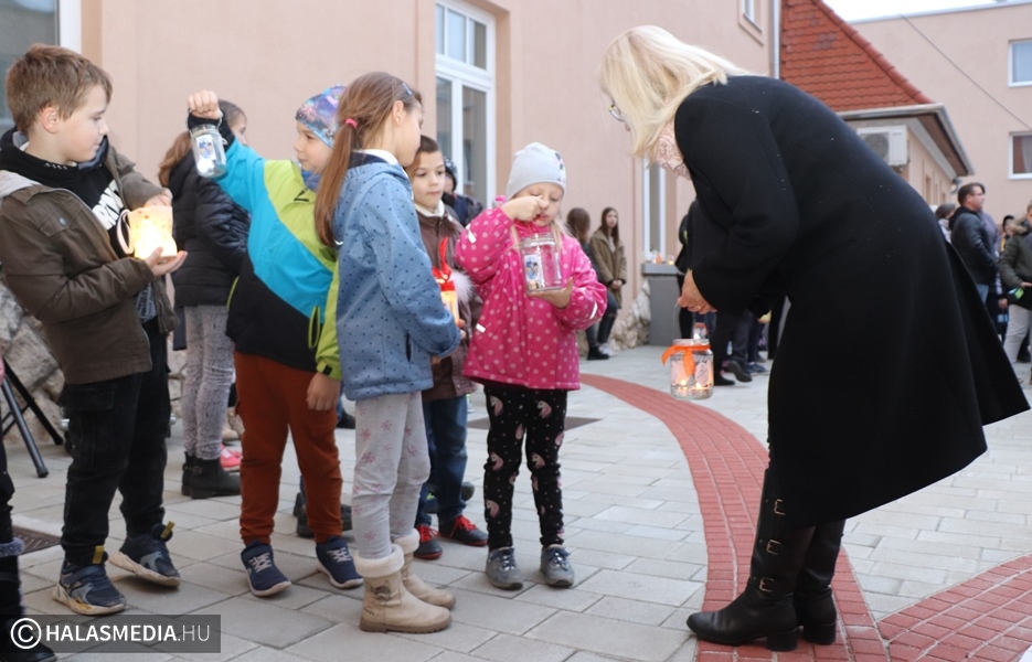 Szerdán késő délután lámpásokkal a kezükben gyülekeztek a Szent József Katolikus Általános Iskola diákjai, pedagógusai, valamint a Lomb utcai katolikus óvoda gyerkőcei, akiket szüleik és az óvónők kísértek el. Az intézmény nemrégiben átadott díszudvara szép díszlete volt a program első felének. Itt a kezdést jelző trombitaszólót egy emeleti ablakból csendült fel. Dózsáné Mohos Mónika igazgatónő köszöntőjében elmondta, hogy ez már a 13. ilyen alkalom. Az intézmény vezetője örömmel konstatálta, hogy szinte teljesen megtelt a helyszín és kis lámpások egész sora világította meg az udvart. Az iskolások műsorában vidám libás verseket magyarul, Márton-napi dalokat németül hallhatták a megjelentek.