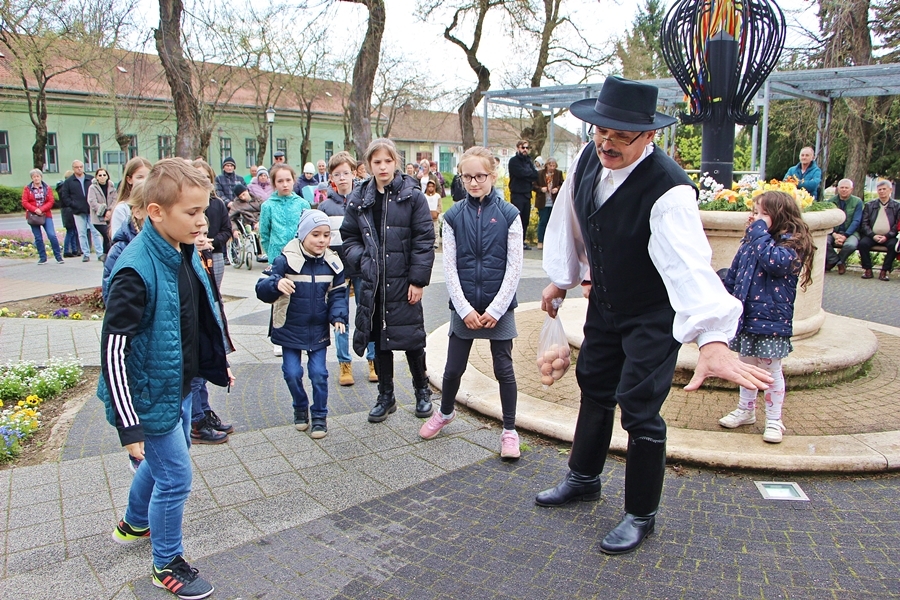 A néptáncosok azon túl, hogy bemutatták az erre a napra összeállított koreográfiáikat, bevonták a közönség tagjait is. A legkisebbeket például egy tojásgurító versenyre invitálták.