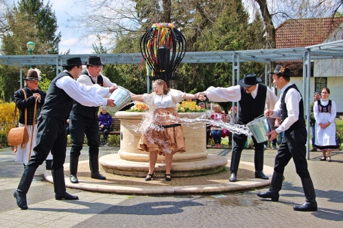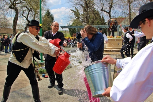 A Pásztortűz Egyesület másfél évtizede szervezi meg hagyományőrző húsvéti locsolkodását. A díszkútnál gyűltek össze kicsik és nagyok, hogy végignézzék, amint a néptáncos legények vödrökből zúdítják a vizet a lányokra. A helyszínen forgatott az M1 stábja, és természetesen a riporterhölgy sem úszta meg szárazon a locsolkodást.