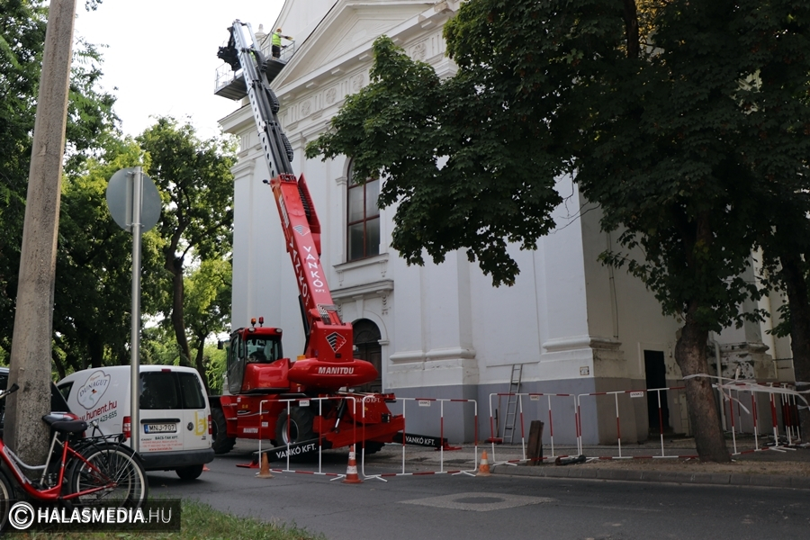 Mint a helyszínen a felújítást végző vállalkozótól megtudtuk, első körben a veszélyes vakolatdarabokat verik le, hogy a templomban tartandó évnyitó ünnepségre zavartalanul tudjanak közlekedni a diákok és hozzátartozóik. Ezt követően kezdődik majd meg a tényleges renoválási szakasz. Előzetesen több templomot is alaposan megvizsgáltak a kivitelezők, hogy megtalálják a legbiztonságosabb és legeredményesebb felújítási módszert.