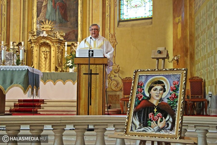 A csipkevarrók védőszentjének festményét dr. Finta József érseki helynök szentelte meg a mise legvégén. A kép a tervek szerint a tempolom melletti közösségi házban kap helyet.