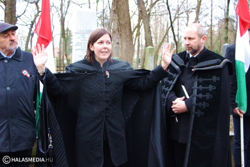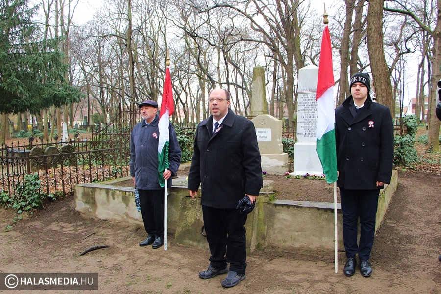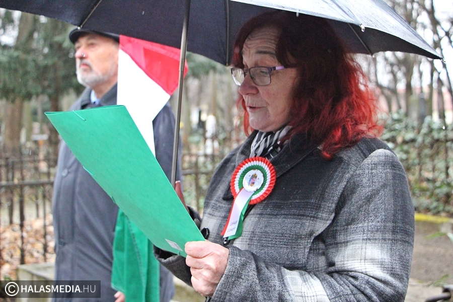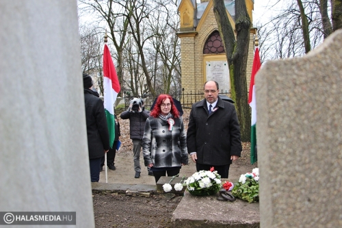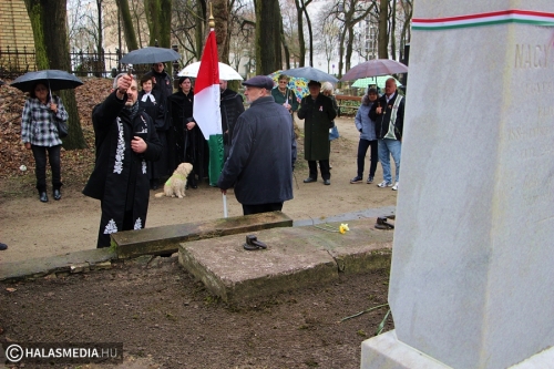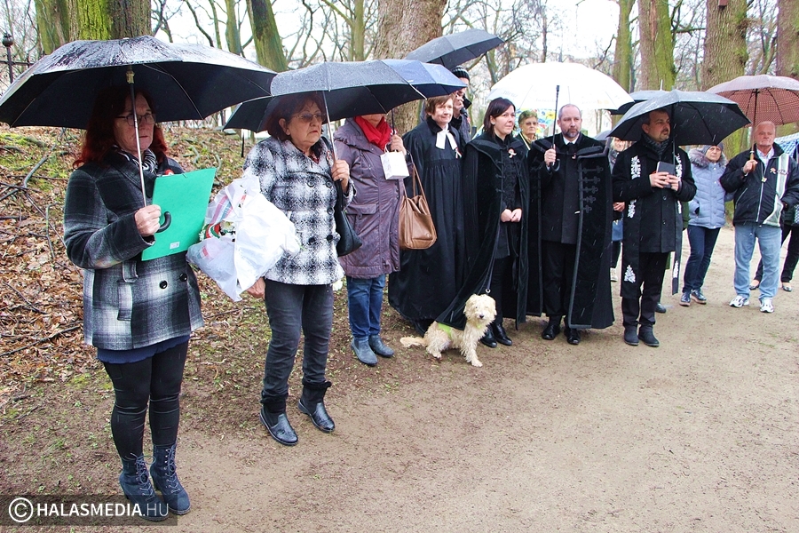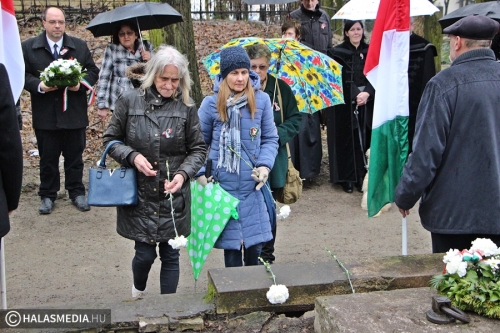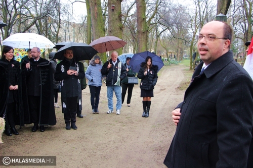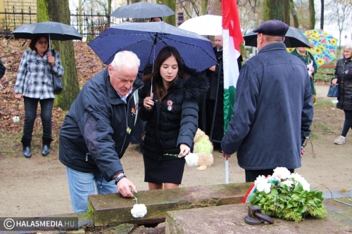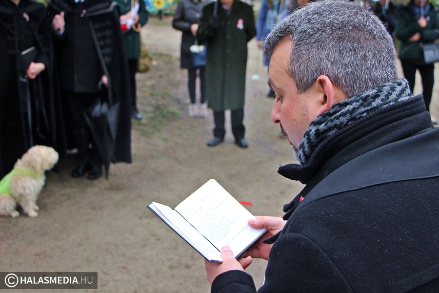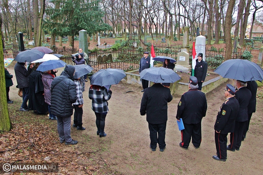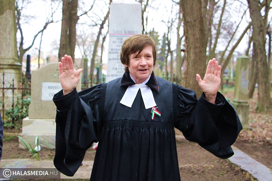 A helyszínen a Szilády Áron Református Gimnázium önkéntesei zászlóval álltak őrséget, majd verset is mondtak. Ezt követően Honti Irén az evangélikus egyházközség, Arany-Michels Richárd és Arany-Michels Tímea lelkészek a református egyházközség és Seffer Attila plébános a római katolikus egyházközség részéről mondott áldást a megszépült sírnál.
