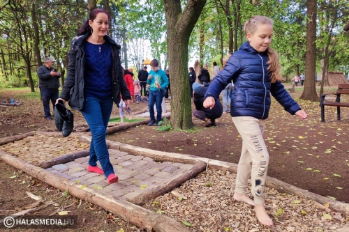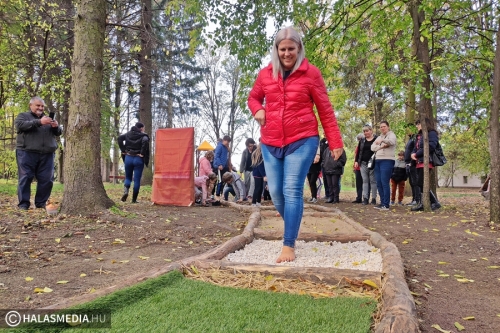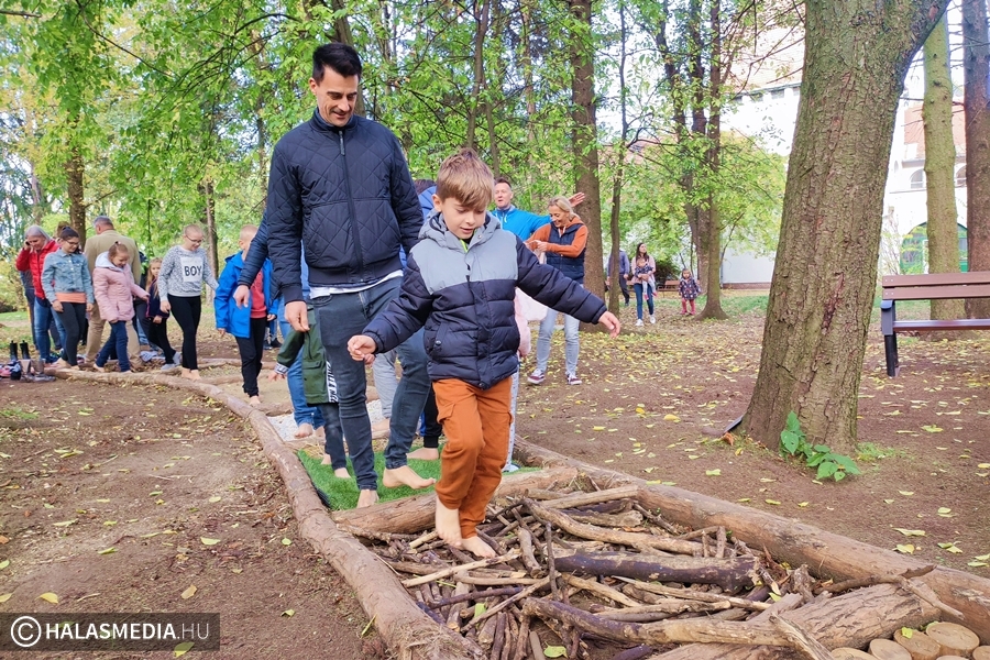 A nap leginkább várt pontja az volt, amikor átadták az úgynevezett mezítlábas ösvényt, mely egy nemes felajánlásnak köszönhetően valósult meg az iskola udvarán. Horgas László, a kiskunhalasi Tesco áruház igazgatója örömét fejezte ki, amiért ilyen hasznos dolog elérésében támogathatták a gyerekeket és pedagógusaikat.