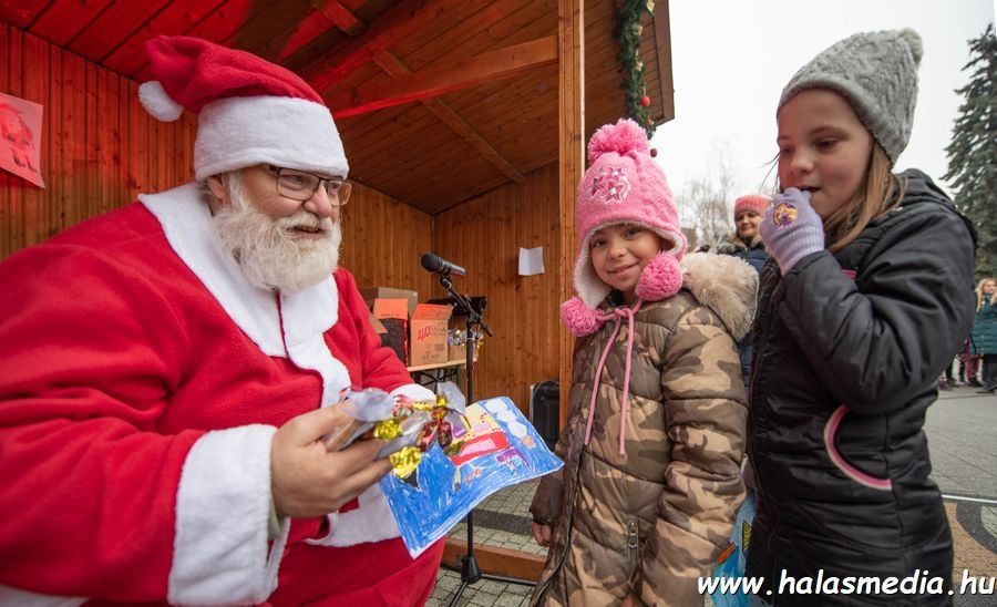 Gyermekzsivajtól hangos esemény zajlott Kiskunhalas város főterén december 6-án délelőtt. A Halasi Média és Kultúra Nonporfit Kft. szervezte városi Mikulás rendezvényre érkeztek csoportokban a különböző oktatási intézmények legkisebb tagjai. A pedagógusi felügyelet mellett történő főtérlátogatáson a legfőbb látványosságnak a Mikulás és persze a házikója látogatása bizonyult, amely telis-tele volt ajándékkal.