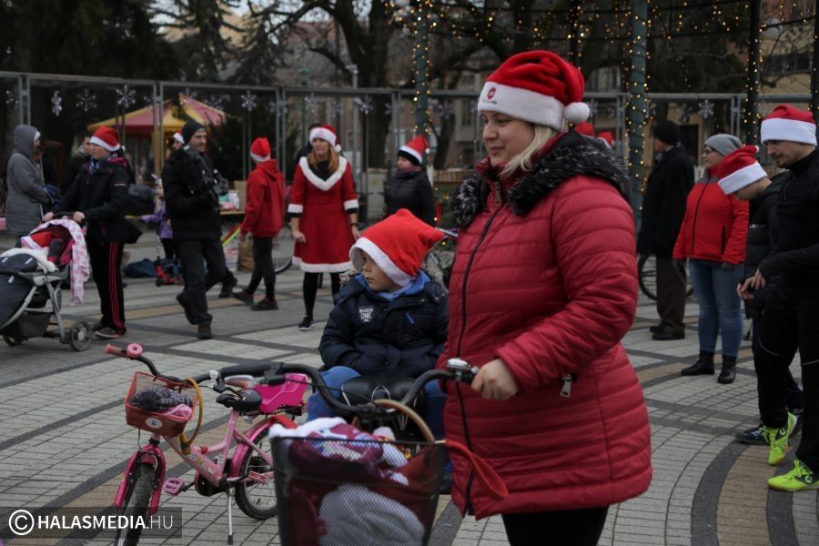 A rajtot követően a lelkes csapat elindult és végigfutotta, kerékpározta a négy kilométert. Az út során nagy feltűnést keltettek városszerte a Mikulásruhás urak, hölgyek.