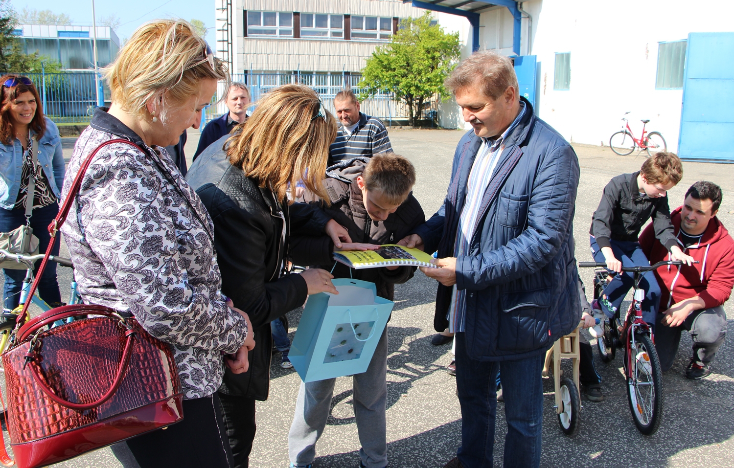 Megható pillanatokat élhettünk át hétfőn délelőtt a Koliken Kft. telephelyén. A vállalkozás vezetője, Koligyer Zoltán több mint 1 millió forint értékben adott át kerékpárokat a Református Egységes Gyógypedagógiai Módszertani Intézménynek.A nagylelkű ajándékot Bori Judit megbízott igazgató vette át, néhány kétkerekűt azonnal ki is próbáltak az ott lévő gyerkőcök.