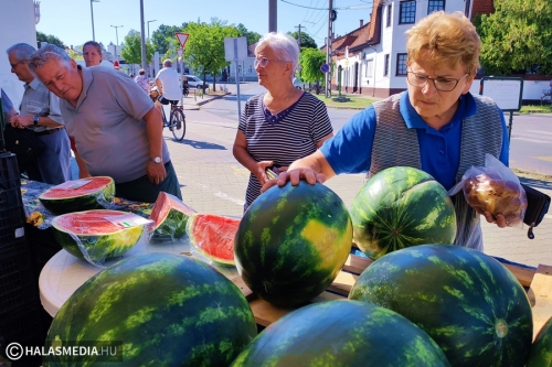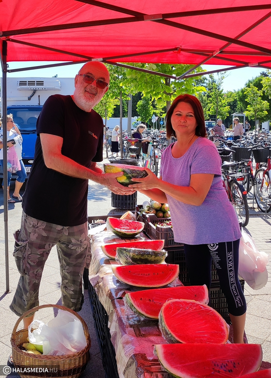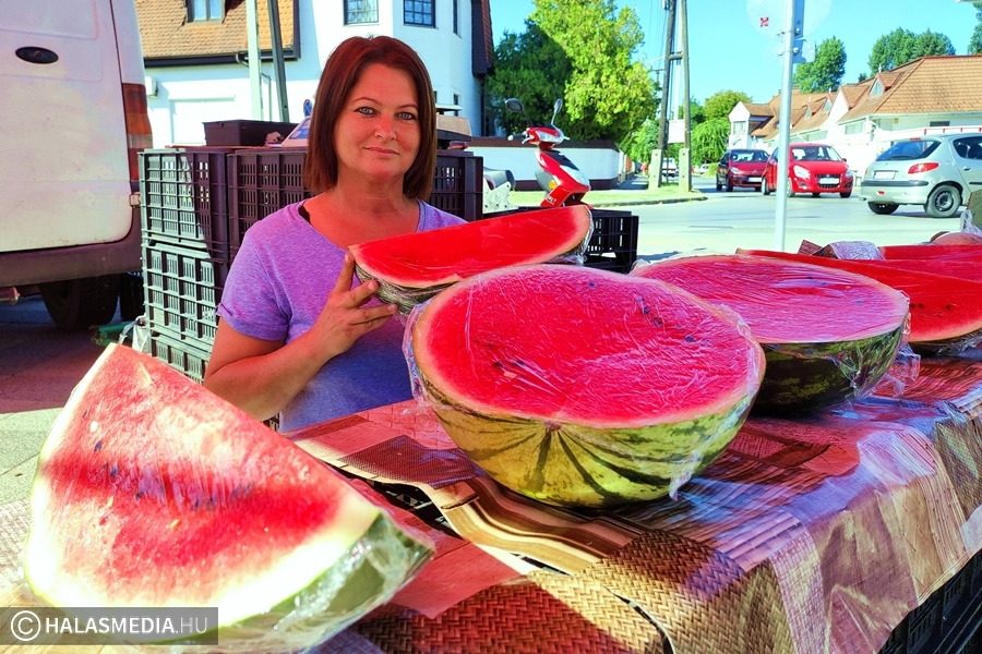 - Az idei dinnyetermés nagyon jó lett. Mint, minden évben, most is olasz dinnyével kezdtünk, de végre megérkeztek a magyar dinnyék is. Nem nagyon visznek egész dinnyét, ennek elsődleges oka, hogy sajnos most is emelkedtek az árak, így a legtöbb vásárló nem tud, vagy nem akar egész dinnyét venni. Felet, negyedet viszont rengeteget eladunk – árulta el Balanyi Erika vállalkozó.