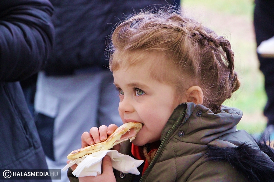 A kolbászok mellett hájas kalács, farsangi fánk, forralt bor és tea, tepertő, zsíros kenyér, valamint ízletes lepények is szerepeltek a gasztronómiai kínálatban.