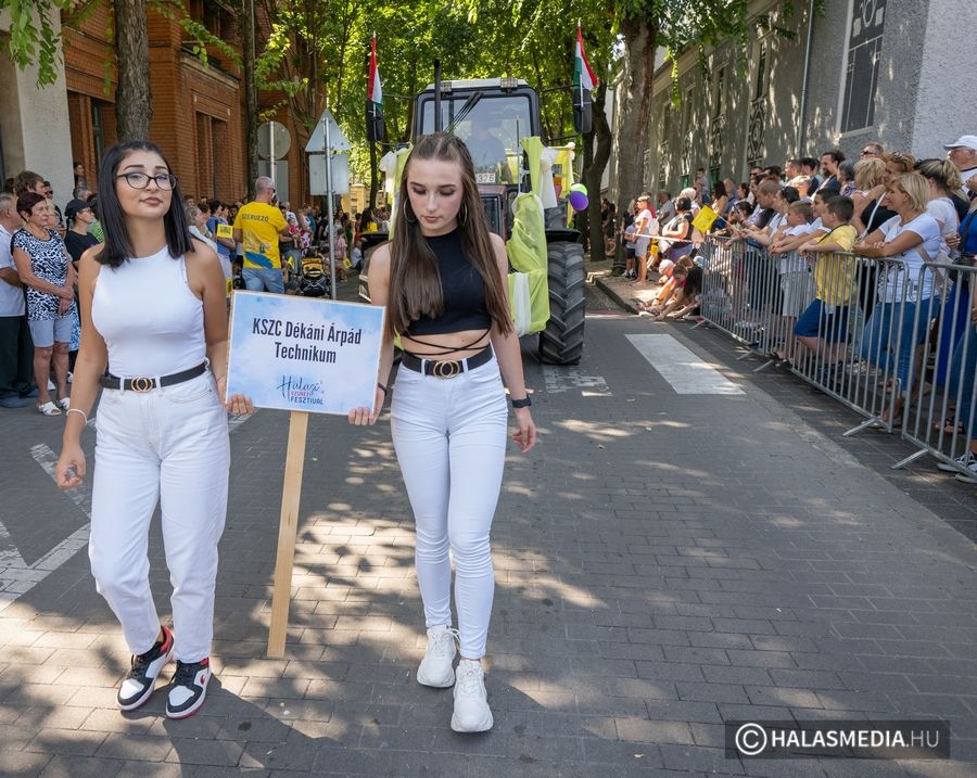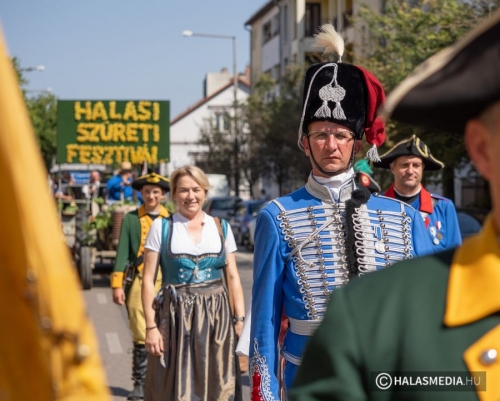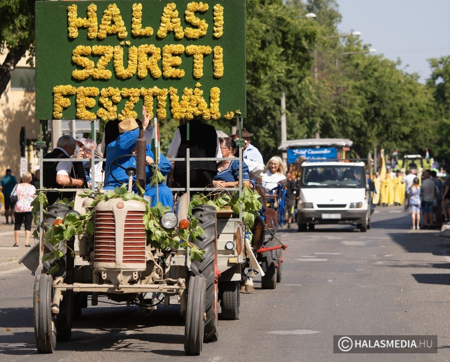 A 44. Halasi Szüreti Fesztivál nyarat idéző melegben tartotta meg a szüreti menetet szombaton kevéssel délután egy órakor. Több kiindulási pontból a Kossuth utcán egyesült a lovasokból, fogatokból, különböző civil szervezetekből, iskolákból, intézményekből szervezett menetoszlop. A főutca mindkét oldalán gyűltek a halasi polgárok és érdeklődők, hogy megcsodálják a felvonulást.