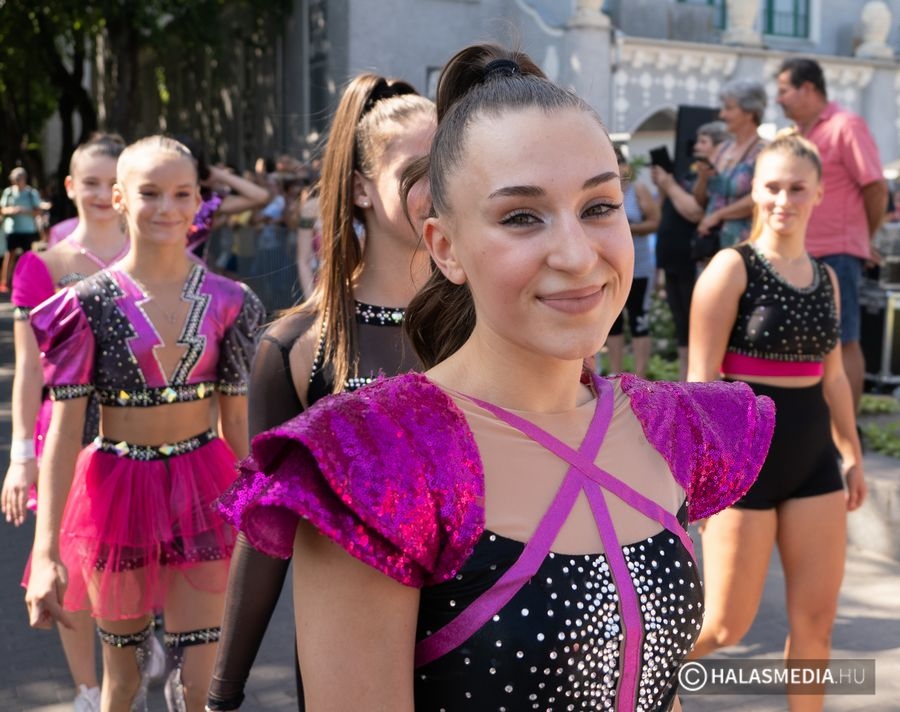Majd félszáz csoportban, több száz felvonuló adta a 44. Halasi Szüreti Fesztivál legvonzóbb attrakcióját szombat délután 13 óra után kevéssel. A Kossuth utca oldalán sok-sok érdeklődő kísérte figyelemmel a szüreti menetet. A főutcán többször megálltak, megmutatták magukat a csoportok, a táncosok pedig bemutatót adtak. A főtérre érve ismét rövid műsorral szórakoztatták az összegyűlt tömeget, majd a menet után Fülöp Róbert polgármester a nagyszínpadon megnyitotta Halas legnagyobb kulturális rendezvényét. (címképen a Halasi Fitness Egyesület záró gúlája)