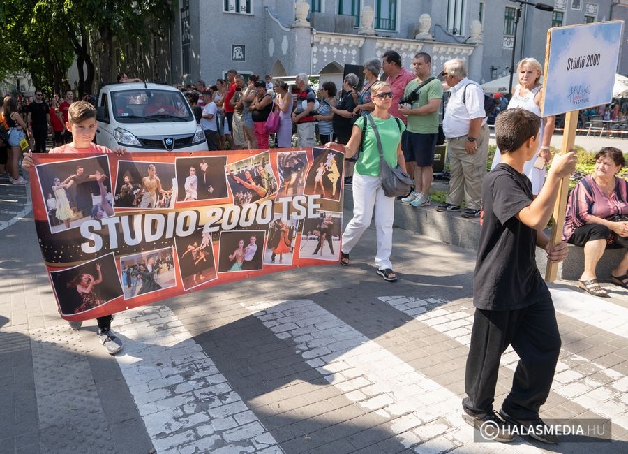 A főtérre érkezve a több száz kíváncsiskodónak és a város hivatalos vendégeinek külön bemutatókkal készültek a csoportok. A szervező Halasi Városmenedzser Nonprofit Kft. munkatársai, Szőri Attila és Bakos László műsorvezetők a résztvevőkről részletes bemutatást adtak, amit a Halas Televízió élőben közvetített, megosztva azt a közösségi médiafelületén.