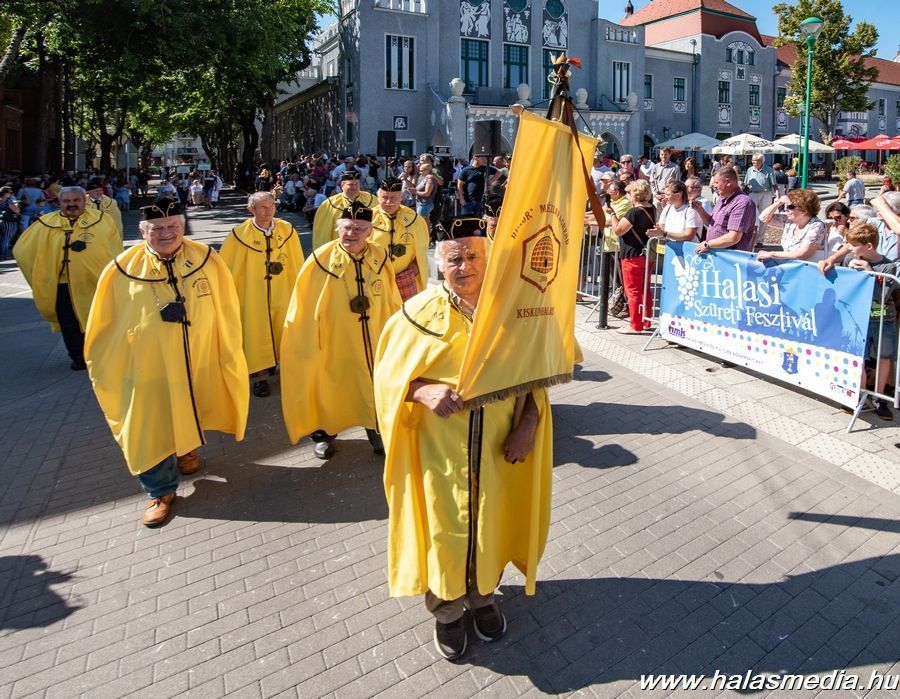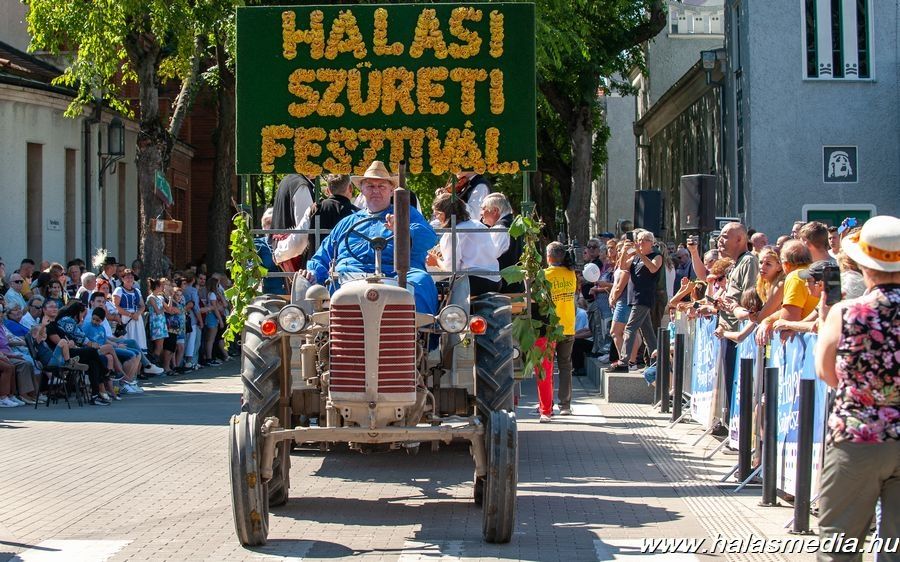 A 42. Halasi Szüreti Fesztivál menetének résztvevőit és közönségét nyárias időjárás, verőfényes napsütés várta. Egy órakor indult hivatalosan útjára a kígyózó sor, amely végig haladt a Kossuth utcán, majd a Köztársaság utcáról fordultak be a Bethlen Gábor téren várakozó tömeg elé, hogy ott is begyűjtsék a nézelődők tapssal és biztató bekiabálásokkal teli tetszésnyilvánítását.