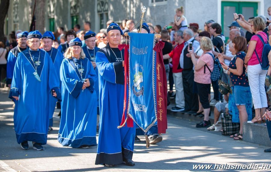 A menet főtérre érkezését nem csak a helyszínen, hanem világszerte láthatták. A Halas Televízió munkatársai Bakos László és Szőri Attila műsorvezetése mellett élőben közvetítették az eseményeket, amelyeket külföldön is sokan figyelemmel kísértek. A legnagyobb közösségi média oldalán megosztott online közvetítést Európa szerte és a tengeren túlról is követték, csakúgy a főtéri, nagyszínpadon történt délutáni eseményeket. A szüreti fesztivál műsora délután és egész este és holnap is folytatódik. A további szüreti műsorokhoz kattintson ide!