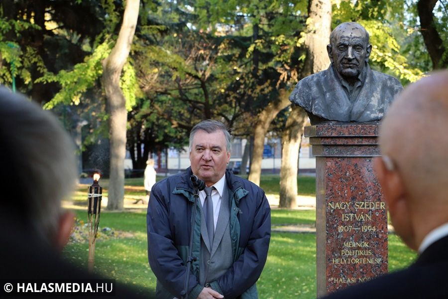 Ünnepséget szervezett az ’56-os Emlékbizottság Nagy Szeder István szobránál Kiskunhalas központjában. A mérnök, író, helytörténész nevéhez fűződik az 1956 november elsején megtartott halasi népszavazás melynek során a szavazók döntő többsége a Független Kisgazdapártra adta a voksát. A népszavazás, a halasi norma, nem csak Halas, hanem az ország történetébe is bekerült.