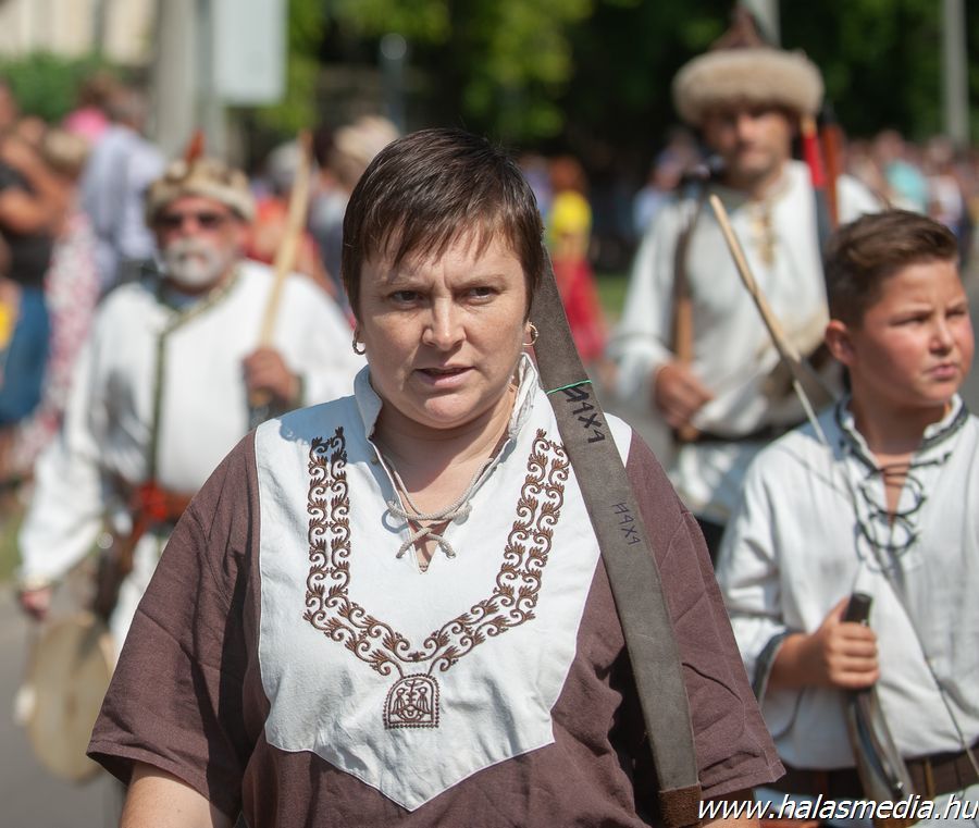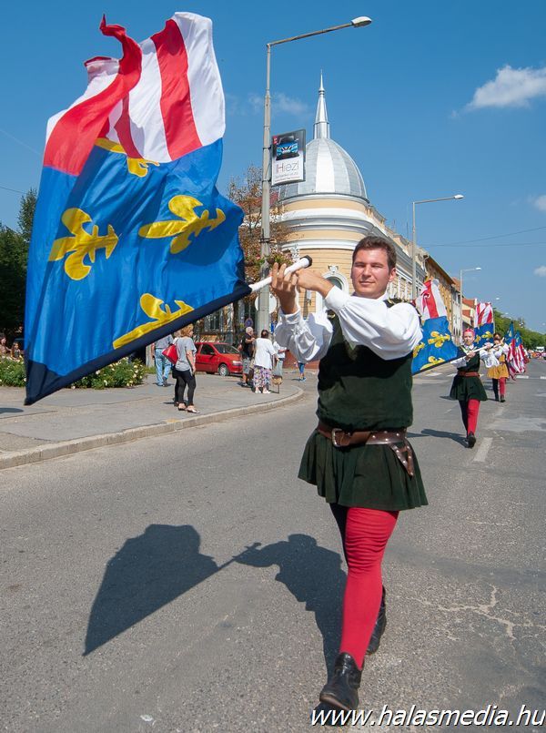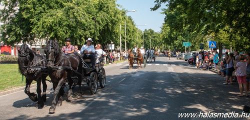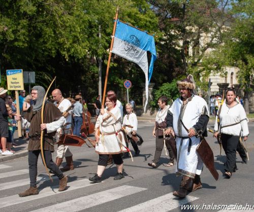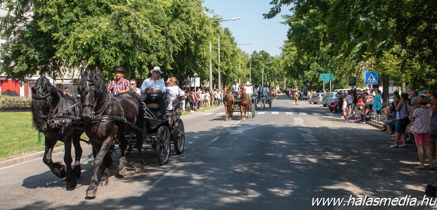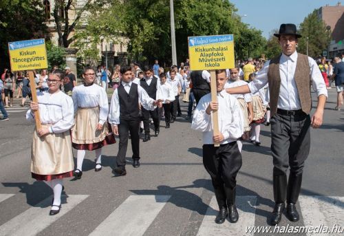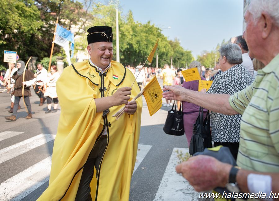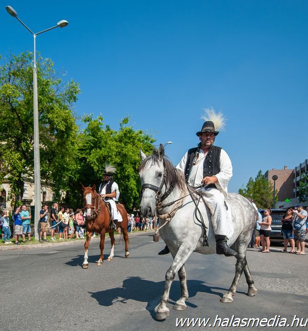 Valamivel egy óra után rendőrségi felvezetéssel a Kiskunhalasi Lovasbandérium svadronja indította el a több mint egy kilométeresre nyúlt felvonulókat. Stílszerűen 39 egységben követték egymást a különböző formációk.