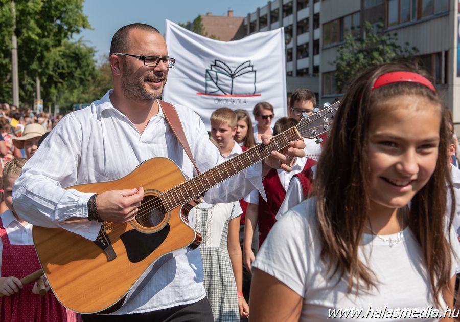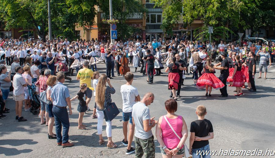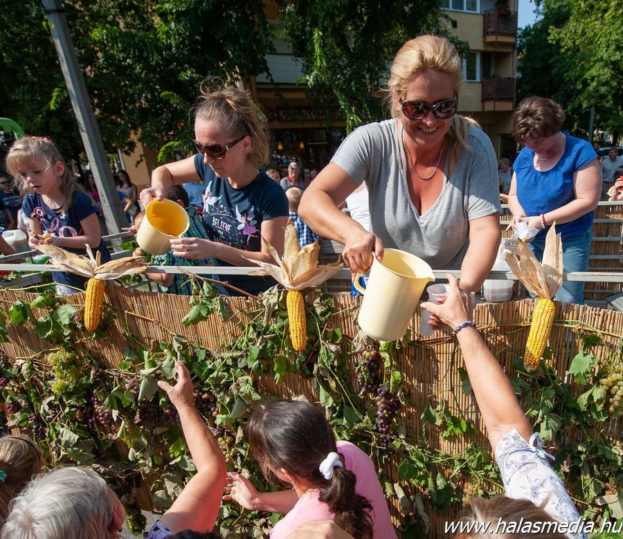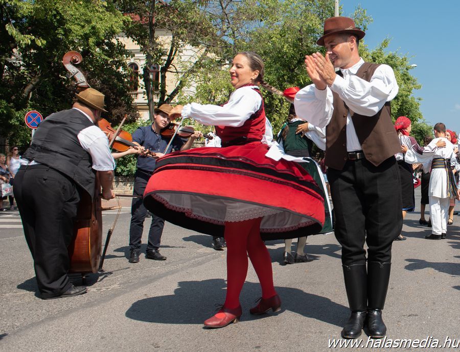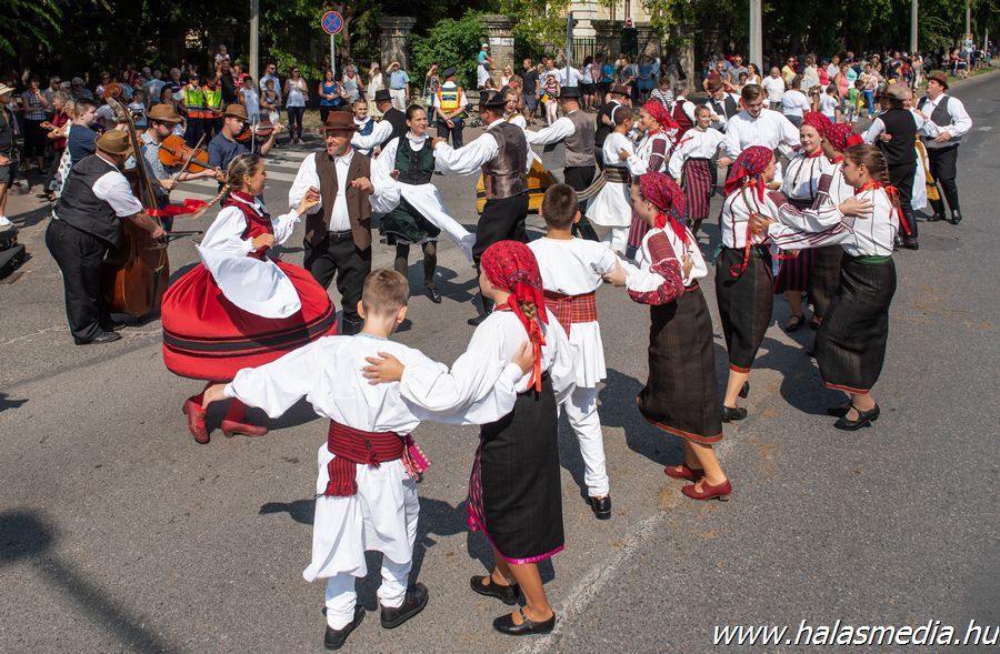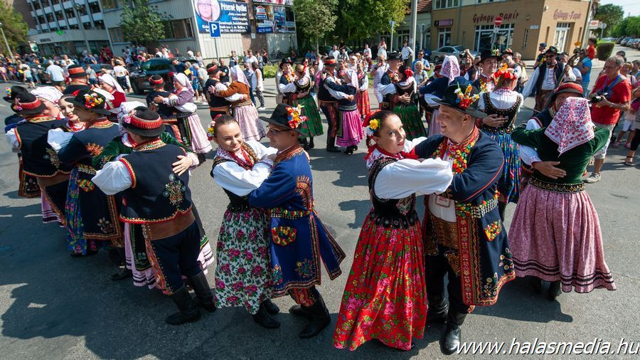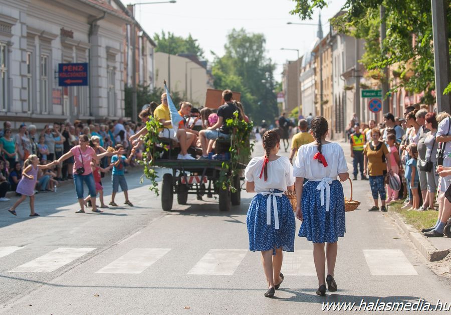 A végeláthatatlannak tetsző felvonulás több mint egy órán át adott ízelítőt a kiskunhalasi és környéki szüreti hagyományokból, illetve a meghívott külföldi csoportok által nyújtott zenés, táncos bemutatókból.
