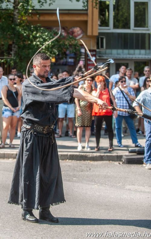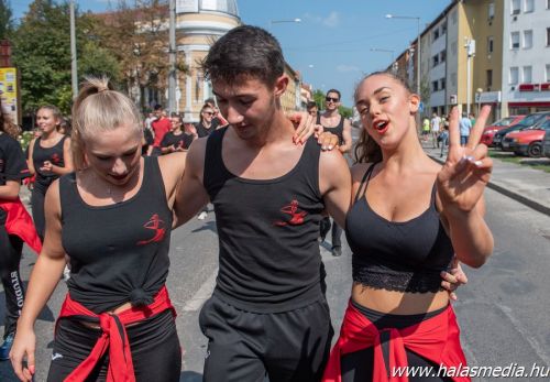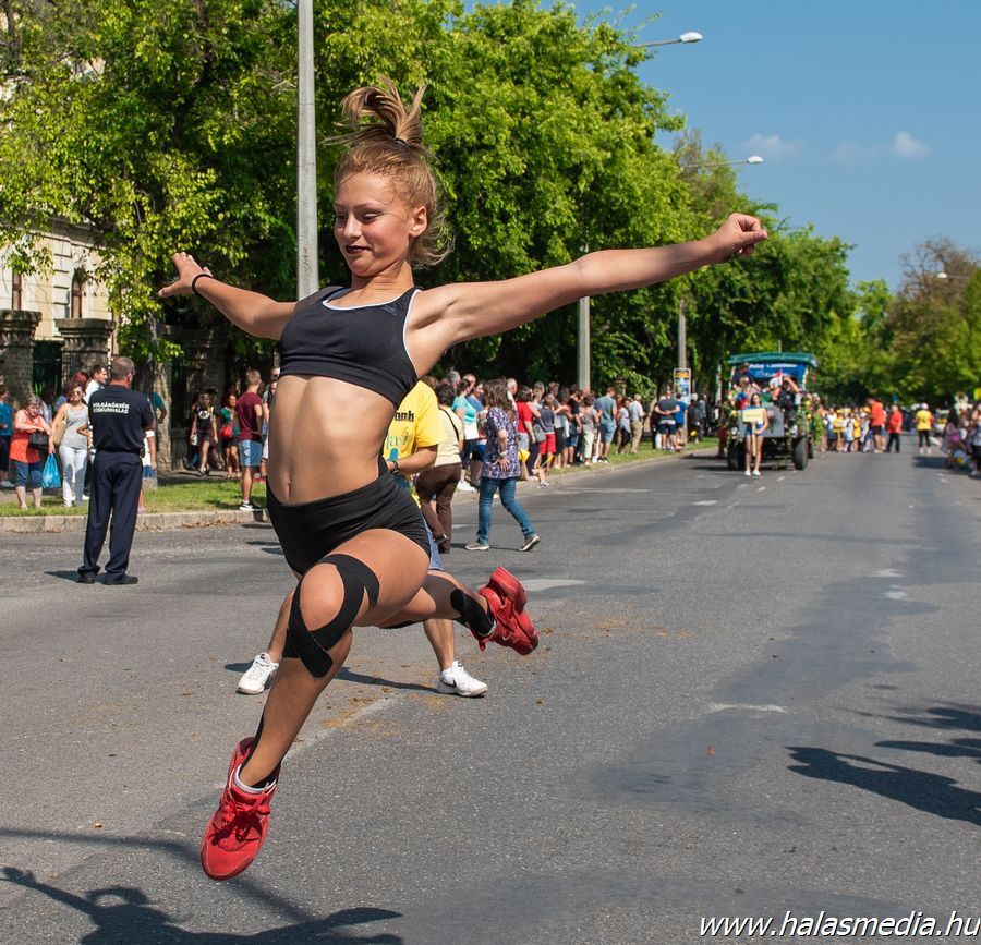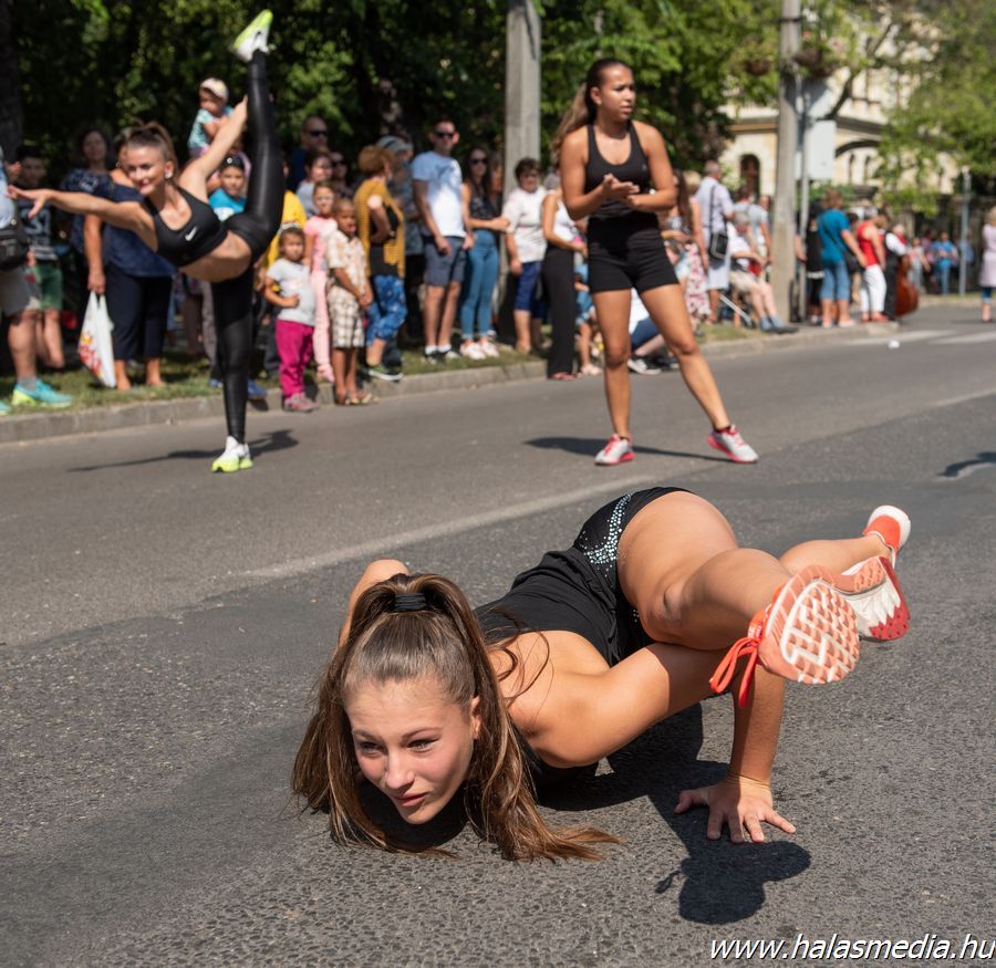 A menet során a szervező Halasi Média és Kultúra Nonprofit Kft. (HMK) munkatársai meghatározott pontokon - jellemzően, ahol a legtöbben láthatták a szereplőket - megállította a menetet és ki-ki a maga műfaja szerinti programját előadta. Természetesen a közönség tapssal biztatva köszönte meg a produkciókat.