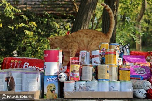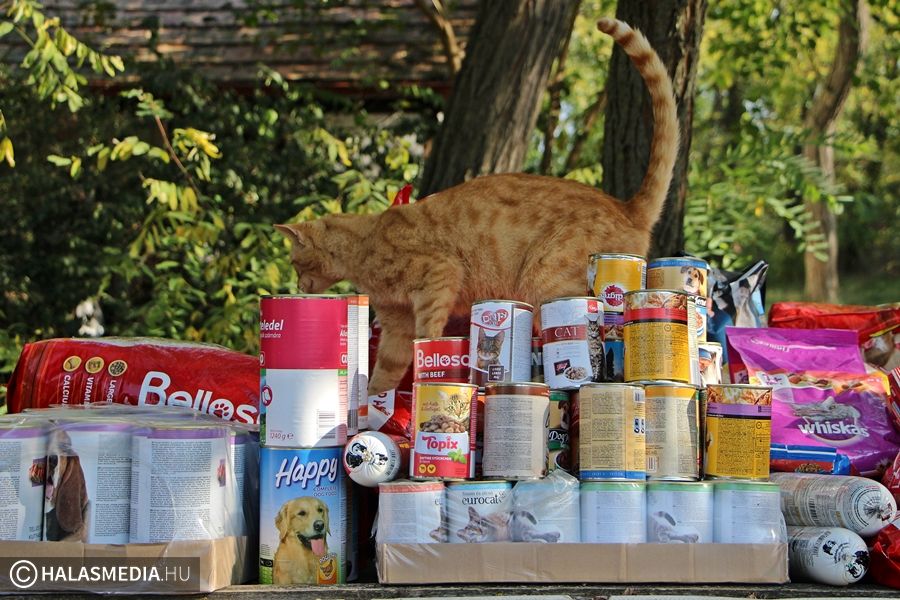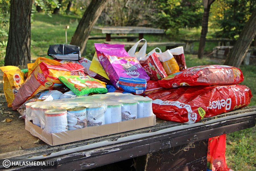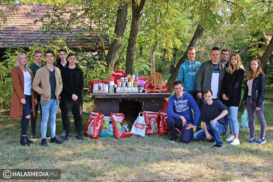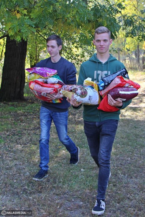 Hatalmas táposzsákokkal és konzervekkel érkeztek a tekós diákok a Halasi Állatotthonhoz. A diákok második éve szervezték meg az iskolai adománygyűjtést, melynek keretében bárki vihetett be az otthonban élő állatok számára valamilyen finomságot. A negyedtonnányi eledel hatalmas segítséget jelent majd a kutyák, macskák ellátásában.