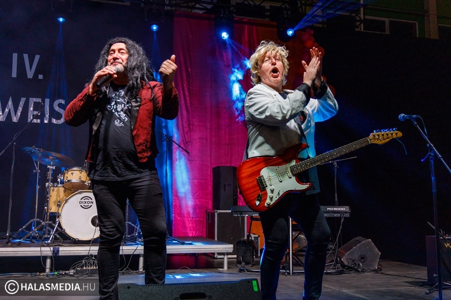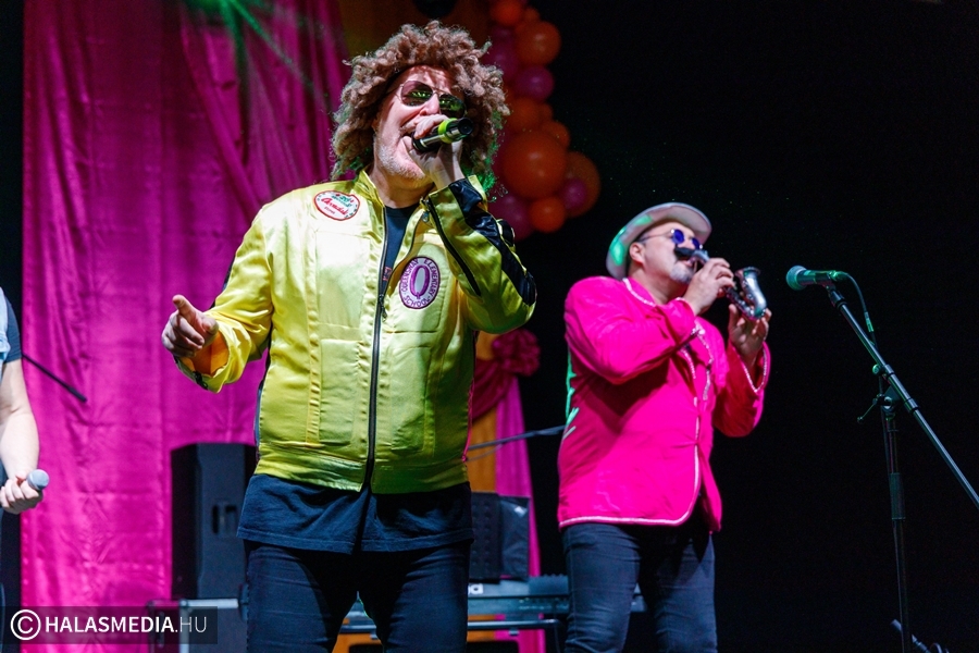 - Van egy nagyjából fix repertoárunk, amin minimálisan tudunk csak változtatni, hiszen nekünk ugye minden dalban megvan az adott jelmezünk, így ha variálnánk a dalokon, nem biztos, hogy lenne hozzá éppen megfelelő ruha, paróka vagy egyéb kiegészítő. De mindig az adott helyszín és a közönség összetétele határozza meg, hogy pontosan mit adunk elő. Ide, Kiskunhalasra is egy színes összeállítással érkeztünk – tudtuk meg Sipos Tamástól, a zenekar egyik énekesétől.