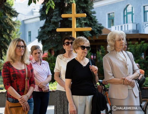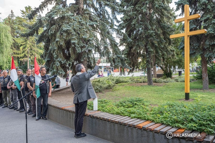 A megemlékezők ezt követően virágokat, koszorúkat, mécseseket helyeztek el az Országzászló emlékműnél. Kiskunhalas képviseletében Fülöp Róbert polgármester és Kuris István László alpolgármester rótta le tiszteletét. Kiskunhalas központjában, a napokban egy kettős keresztet állítottak. A megemlékezők ide sétáltak át a koszorúzást követően. A keresztnél Seffer Attila plébános mondott imát, az egyházi vezető felszentelte a jelképet. A református gyülekezet képviseletében Bocskorás Bertalan elnök-lelkész kért áldást a kettős keresztre.