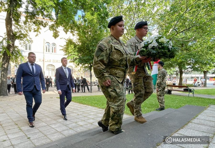 Erre az eseményre emlékezve gyűltek össze ma a résztvevők Kiskunhalas főterén. 16.30 perckor vonták fel a nemzeti lobogót az Országzászló emlékműre. A Kiskunhalasi Lovasbandérium huszárjai és a Dékáni Technikum kadétjai álltak díszőrséget az ünnepi pillanatokban. Verssel, énekkel idézték fel a trianoni békediktátum korszakát a Dékáni Technikum diákjai. A fiatalok méltón szóltak a magyarságot ért veszteségekről. Megemlékező beszédet Stírné Prikdánovics Tímea önkormányzati képviselő mondott. Beszédében kitért a területi és gazdasági veszteségekre is. -1920-ban Magyarország elveszítette területének kétharmadát. Népessége 18 millióról 7 és fél millióra zsugorodott. Több mint hárommillió magyar került a határon kívülre.