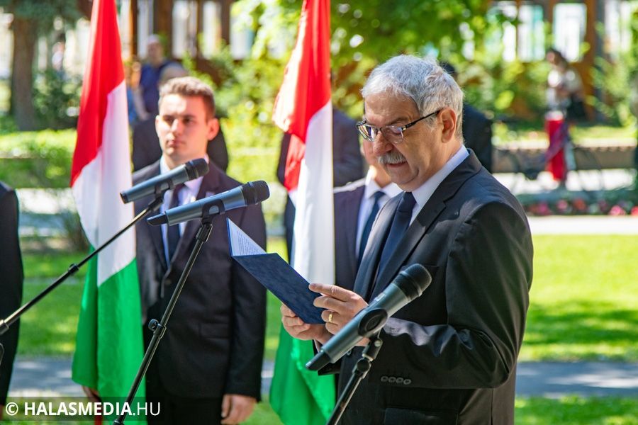 – Az ország elvesztette területeinek és lakosságának jelentős részét, 92 várost, de megmaradt a lényeg: a nyelvünk, a kultúránk, a nemzettudat és a megmaradni akarás a határon innen és túl – hangzott el a beszédben. - Most itt vagyunk Európa közepén ezer éves múlttal, örüljünk egymásnak, hogy megint építhetjük a kapcsolatainkat, egyek vagyunk, összetartozunk – hangsúlyozta Csorba Imre ünnepi beszédében.