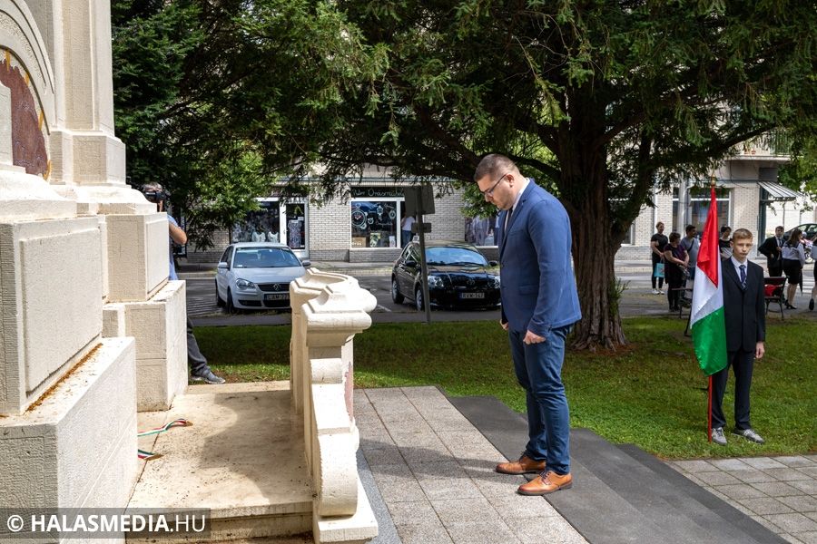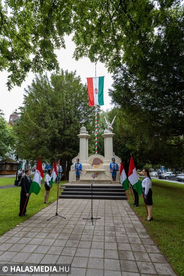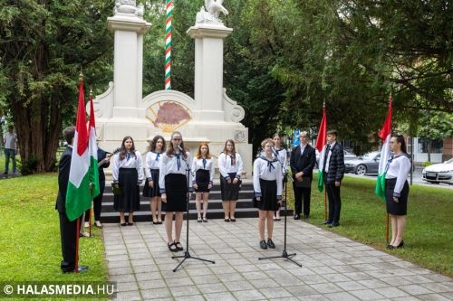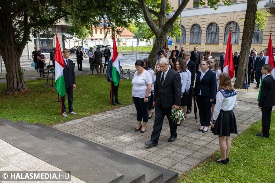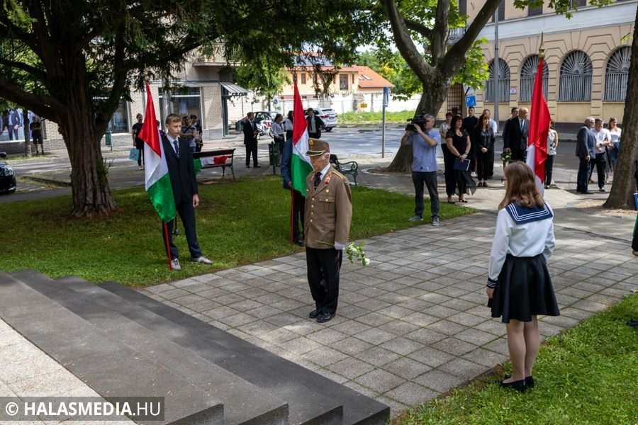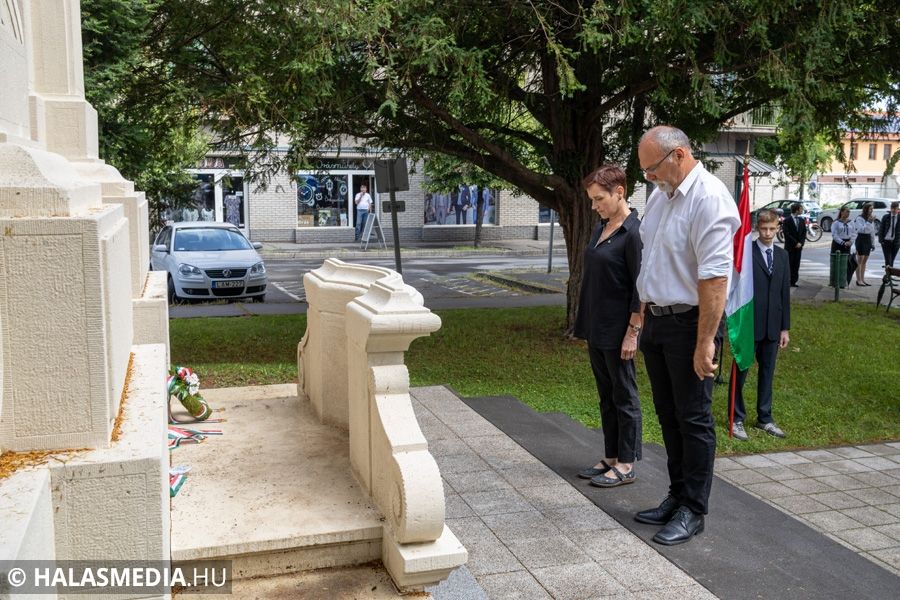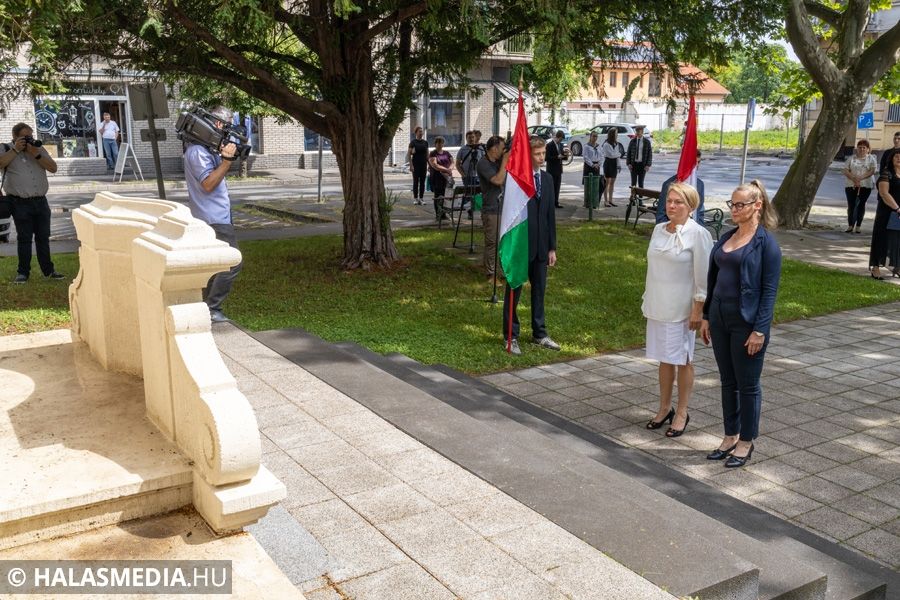 A Halasi Média és Kultúra Kft. szervezésében tartották a halasi városi Trianoni megemlékezést az Országzászló emlékműnél. A zászlófelvonást követően a Bibó István Gimnázium diákjai adtak szívhez szóló, versekkel, énekkel átszőtt műsort felidézve a Tianoni eseményeket, veszteségeket. A műsort a Martonosi Pál Városi Könyvtár munkatársai állították össze. A diákokat a műsorra Zákányné Frei Erzsébet tanárnő készítette fel. Kuris István László alpolgármester mondott megemlékező beszédet.