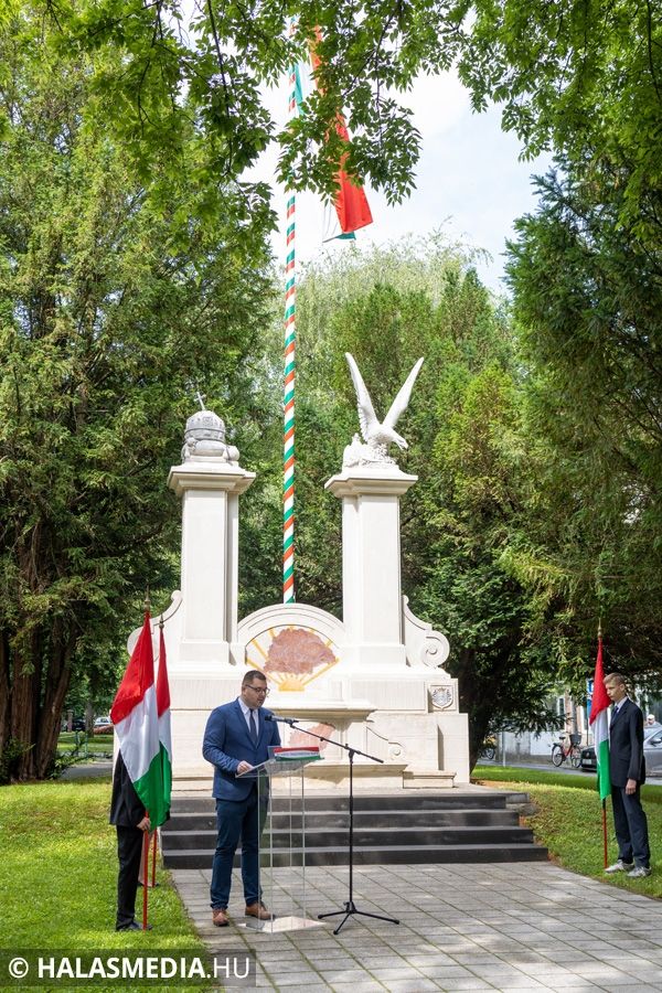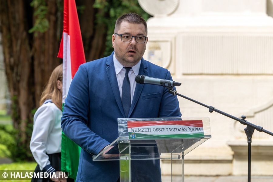 Többek között az összetartozást hangsúlyozta: a nemzeti gyász mellett június 4-e az együvé tartozást is erősíti bennünk. Bennünk, Halasiakban annál is inkább, hiszen ilyenkor különösen is ott vannak a szívünkben a határvonalon túlra rekedt testvérvárosaink közösségei, magyar barátaink. Túllépve az egykori traumákon, nem keseregnünk kell, és nem azon bánkódni, ami szétválaszt, hanem ünnepelni azt, ami összeköt. Hiszen bárhol éljen is a magyar, a közös gyökerek, a kultúra, az értékrend, a hit, a remény és a tisztelet összeköt bennünket. Összetartozunk – mondta Kuris István László alpolgármester.