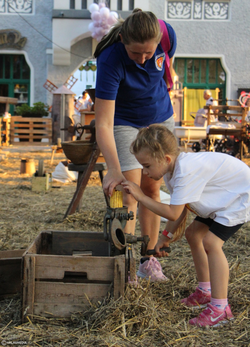 A kicsiket elbűvölik a nyuszik, kiskacsák és a többi simogatni való jószág. Hogy még tovább élvezhessék az élményt, egy világítóeszköz gondoskodik arról, hogy még sötétedés után is nyitva tarthasson a kedvelt játszóhely. A népi játszó mellett idén is van fotósarok, most egy öreg traktorral, a Szüreti Fesztivál felirattal lehet fényképezkedni.
