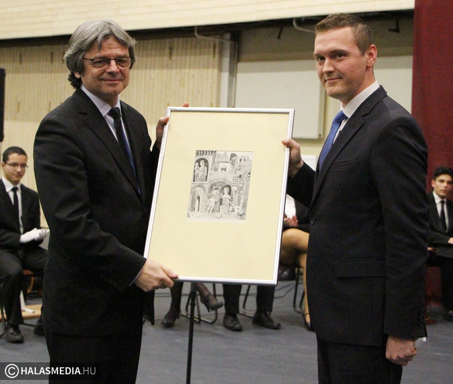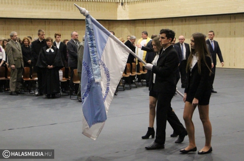 Az ünnepség keretében avatták fel az új iskolazászlót. A zászlóanya Szécsiné Rédei Éva, a Csipkeház igazgatónője lett. Ő adta át az intézmény jelképét Molnár Nándornak, majd felkötötte rá az első szalagot. A diákság nevében Banka Dániel kapta kezébe a zászlót. Az egyházi szertartáson, az áldáson a katolikus közösség nevében Berki József, a reformátusok képviseletében Bödecs Pál, a baptisták nevében Friebert Tibor, míg az evangélikus egyház részéről Honti Irén vett részt.