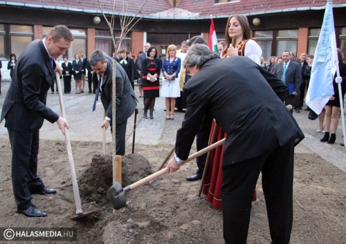 A rendezvény az iskola udvarán zárult. Bányai Gábor, Fülöp Róbert, Papp Gyula, Molnár Nándor, valamint egy diák elültette az iskola fáját, egy japán cseresznyét. A jeles eseményt egy emléktáblán is megörökítették. További részletek az esti híradóban, valamint a szerdai Halasi Tükörben.