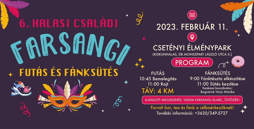 Ismét lehet kocogni és fánkot kóstolni. Február 11-én, a Csetényi Parkban rendezi meg a Halasi Városmenedzser Kft. a 6. Farsangi Futást és Fánksütést.