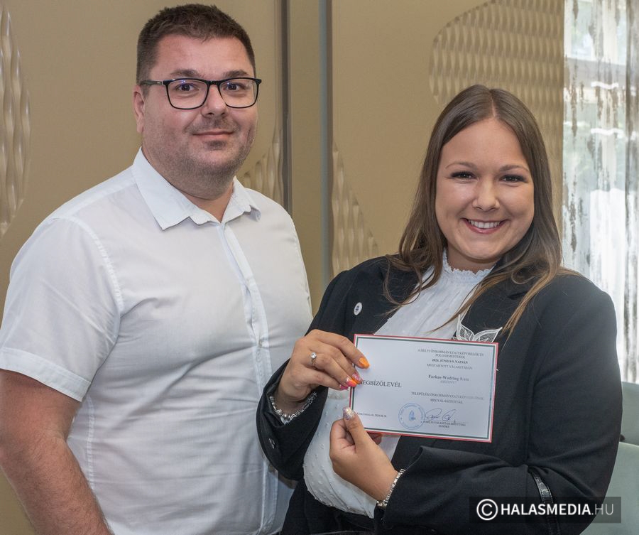 Kedden délután 3 órakor, a Kiskunhalasi Önkormányzati Hivatal házasságkötő termében, Kiskunhalas Város jegyzője, a Helyi Választási Iroda vezetője, Kollárné dr. Lengyel Linda és a Helyi Választási Bizottság elnökhelyettese, Dr. Piegel Attila átadták az önkormányzati választáson megválasztott önkormányzati képviselőknek és a polgármesternek kiállított mandátumleveleket. Az érintettek 2024 október elején kezdik meg mandátumukat. (címképen Fülöp Róbert polgármester veszi át mandátumlevelét)