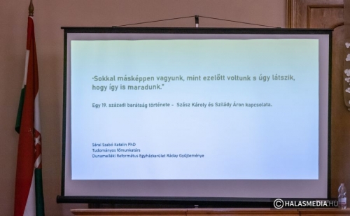 „Sokkal másképpen vagyunk, mint azelőtt voltunk s úgy látszik, hogy így is maradunk.” – állt az idézet a vendégtörténész előadásának nyitó képén a kivetítő vásznon. Dr. Sárai Szabó Katalin Szász Károly költő, református püspök és Szilády Áron református lelkész, irodalomtörténész, nyelvész, orientalista, a Magyar Tudományos Akadémia tagja kapcsolatát dolgozta fel előadásában.