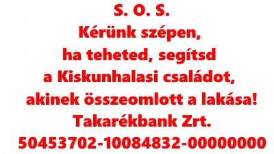 Magánkezdeményezésre gyűjtés indult Radics Klaudiának és családjának, miután az otthonuk néhány másodperc alatt összedőlt vasárnap délelőtt, a Szilády Áron utcában. Szinte mindenük odaveszett, a Halasi Városgazda Zrt és az önkormányzat segített már nekik, de az újrakezdéshez még sok mindenre szükségük van.