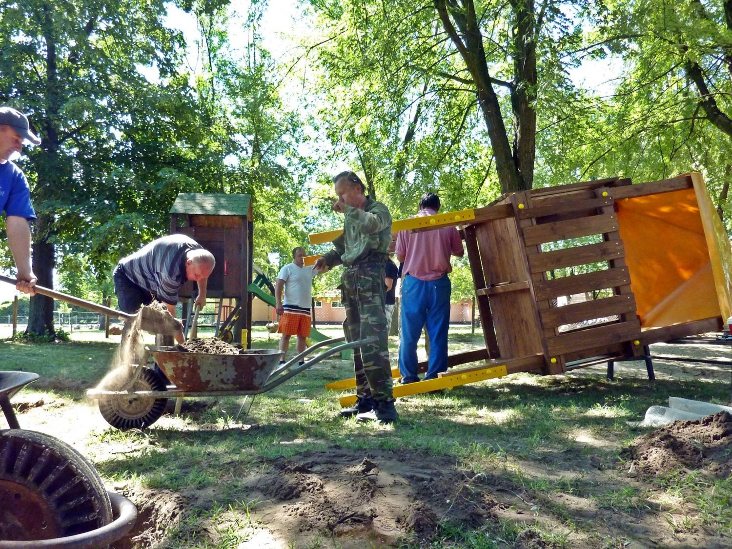 A közösségi összefogásnak köszönhetően az előkészített terepre a szakemberek egy nap alatt le tudták telepíteni a játékokat. Mint megtudtuk, a gyerekek legkorábban egy hét múlva játszhatnak majd a már megfelelően kialakított, a műszaki előírásoknak megfelelő játszótéren.