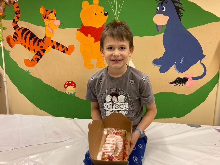 Előzetesen informálódtak, hogy mennyi kis beteg szorul most ápolásra. Azt is kiderítették, hogy mennyi szülő, orvos és ápoló van az osztályon. Szerdán kora este a csomagolást követően elindult a szállítmány a cél felé. A gyermekosztály folyosóján dr. Balázsik Andrea osztályvezető főorvos fogadta Pannit és Gábort. Ő mondott köszönetet a felajánlásért. Miután kiderült, hogy néhány gyermek diétán van, nekik ennek megfelelő palacsintát készítettek. Úgy tűnik, hogy nagy sikere volt az édes meglepetésnek, mert kaptunk egy fotót az osztályról, Hunor ezzel mondott köszönetet a finomságért.