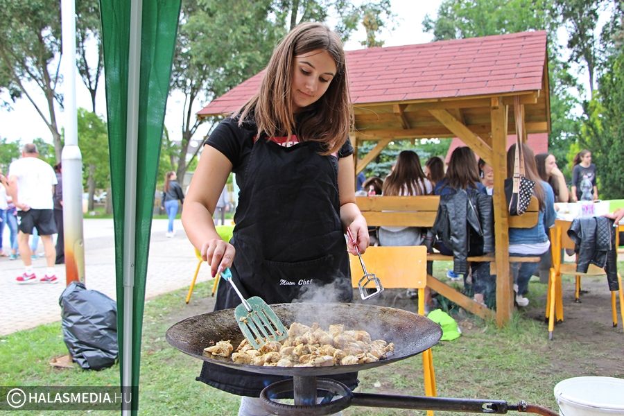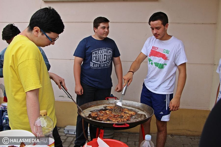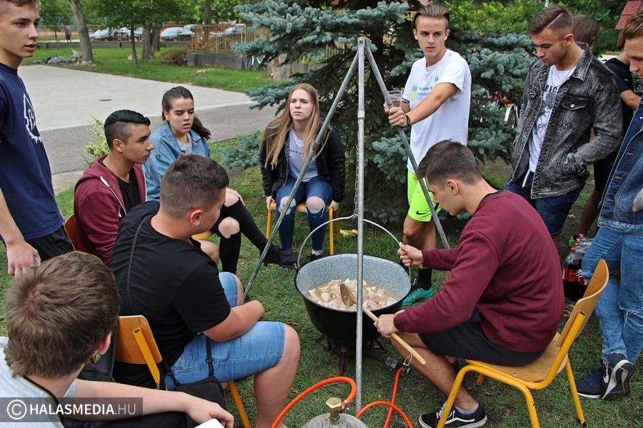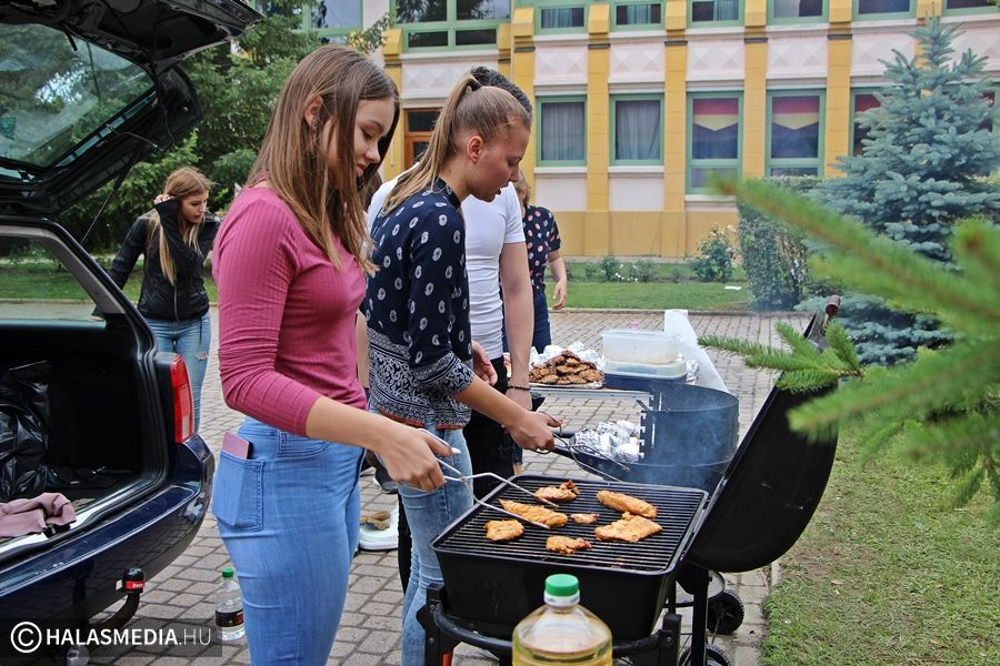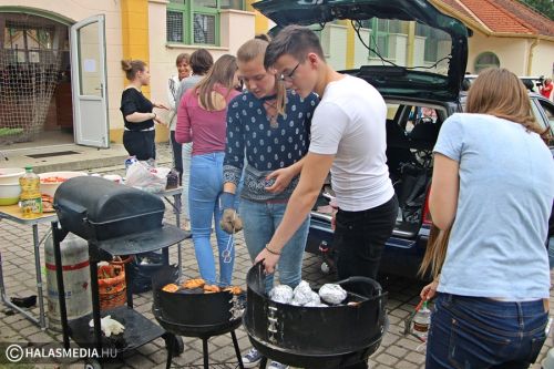 A kiskunhalasi Bibó István Gimnázium diákjai nem tanulással búcsúztatták a 2017-18-as tanévet. Minden osztály kitalált egy ízletes menüsort, amit aztán a fiatalok és tanáraik közösen valósítottak meg az iskola udvarán.