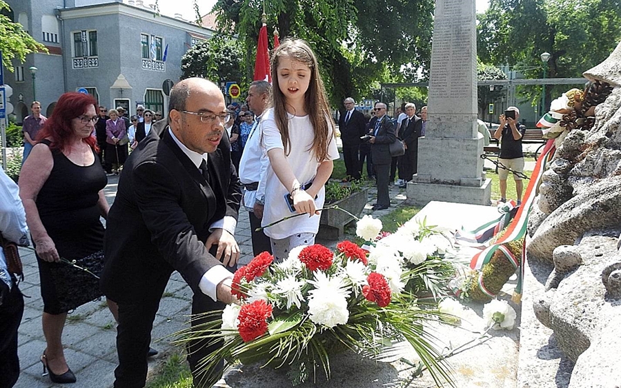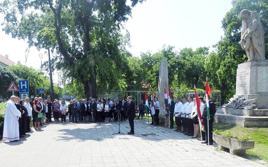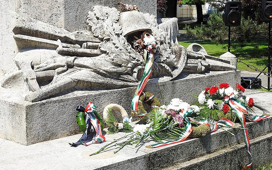 - Egyesületünk elsősorban az első- és a második világháború áldozataira szokott emlékezni. A mai nap viszont a magyar hősök napja van, így minden háborúban, csatában elhunyt ember emlékére helyezünk el koszorúkat. Egy minden tekintetben különleges szobornál állunk most, hiszen eltérően a többi, magyarországi világháborús emlékhelytől, itt nem katona látható, hanem egy hadiözvegy és egy hadiárva – fejtette ki Végső István elnök, történész.
