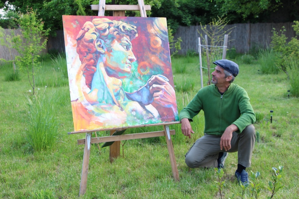 Sáli Levente festőművésznek a természet közelsége sokat segít. Amióta kertes házba költözött, megváltozott az élete és művészileg is új hatások érték. Új színárnyalatokat lát nap mint nap, ehhez csak az udvarra kell kimennie.
