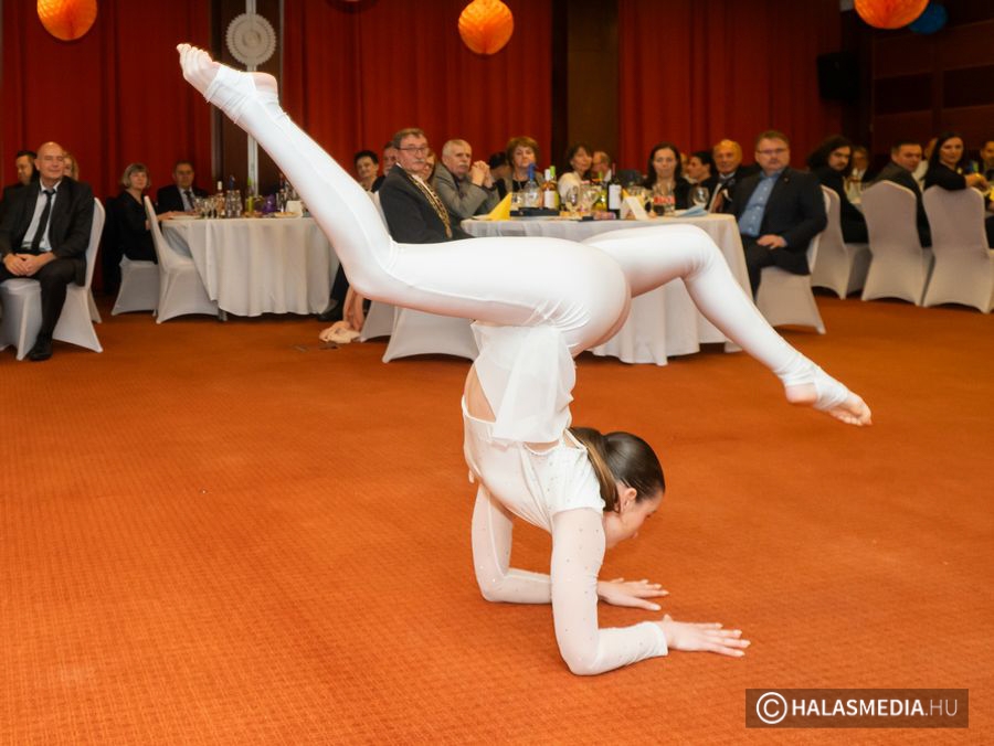 Megtartotta hagyományos bálját a Kiskunhalasi Rotary Club szombat este a Csipke Hotel konferencia termében. Szakál Aurél, szervezet regnáló elnöke évet értékelt köszöntőjében. Különleges, a nemzetközi szervezet nagybecsen tartott díját, a Paul Harris Fellow díját Rékasiné Dr. Oláh Gizella kapta meg a gálaesten (címképen). A rendezvényen a nemzetközi sikereket halmozó a Halas Fitness Egyesület adott színvonalas műsort. Az est vacsorával, majd zenés-táncos mulatsággal folytatódott.